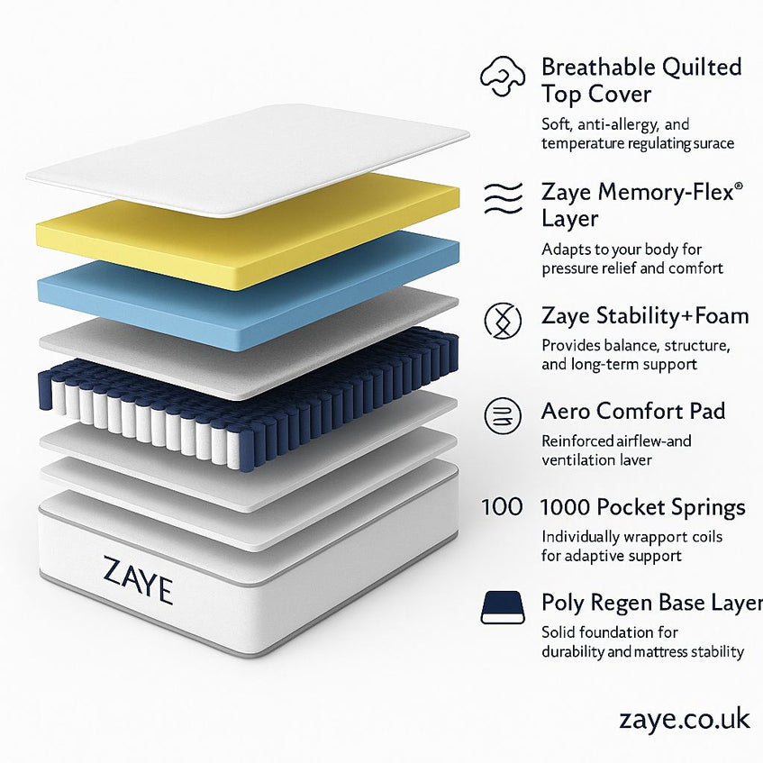 • Includes Premium Memory Foam & 1000 Pocket Spring Mattress for comfort and support