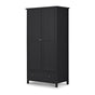This elegant New England style wardrobe features two doors and one drawer, showcasing a refined aesthetic with timeless appeal. The exquisite anthracite lacquered finish, characteristic side paneling, and detailed chamfered cabinetry create a soothing ambiance, while delicate pewter handles provide the perfect finishing touch.
