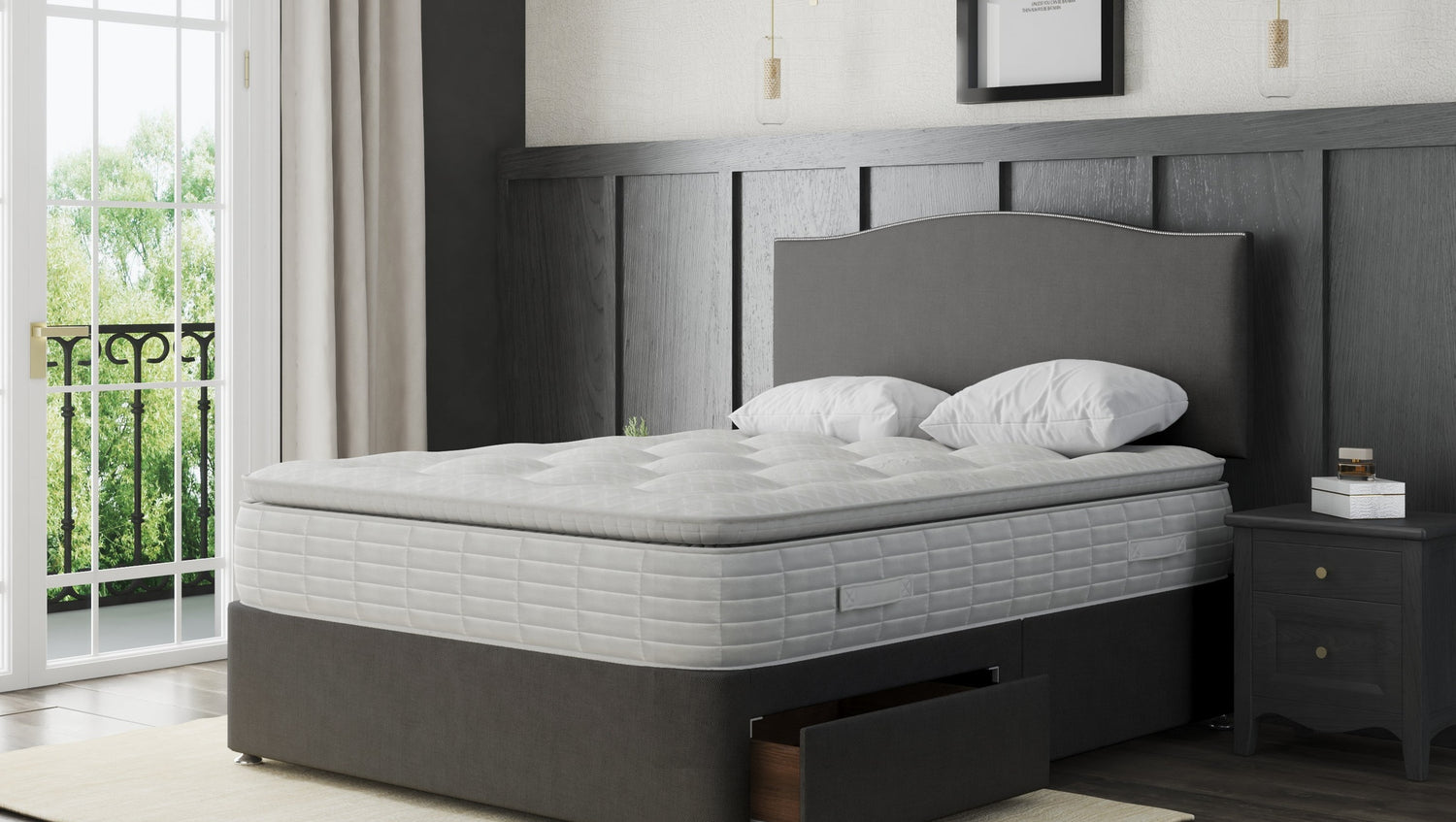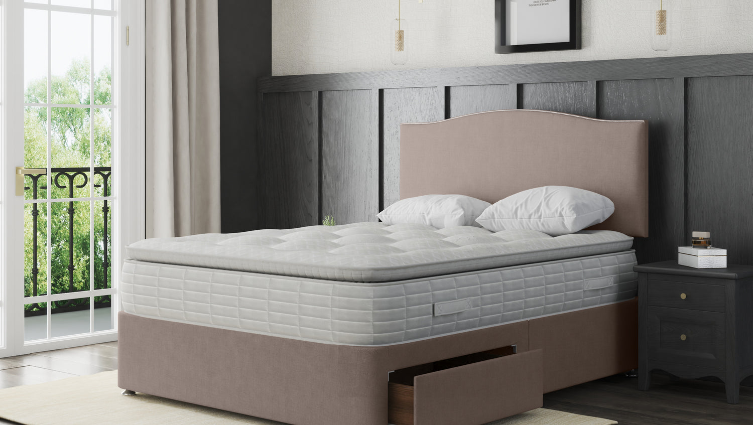 • Premium Fabric Upholstery: Our divan bed base and headboard are upholstered in high-quality fabric, offering a refined and elegant look.