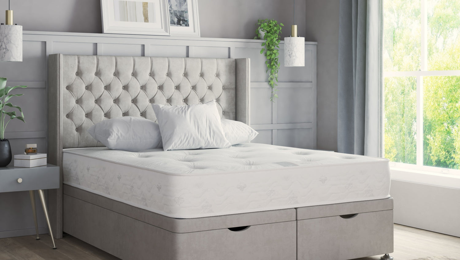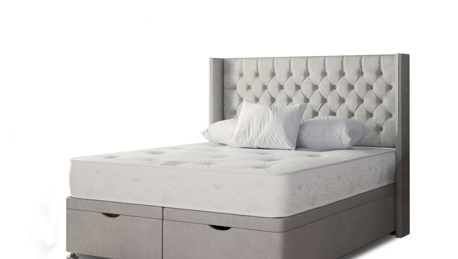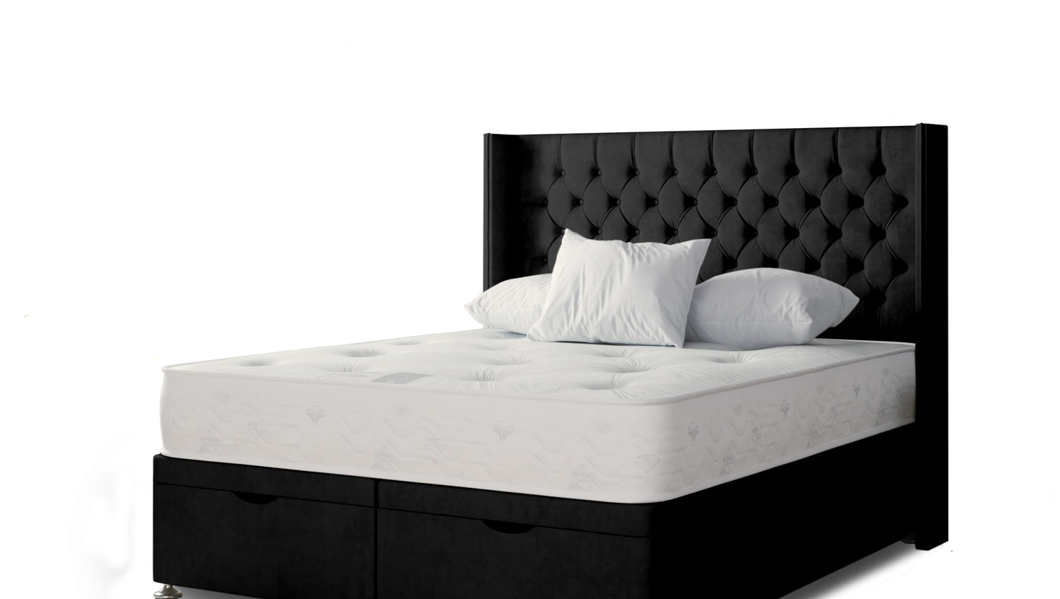 Ottoman Storage Bed with Winged Headboard – Front Opening Design