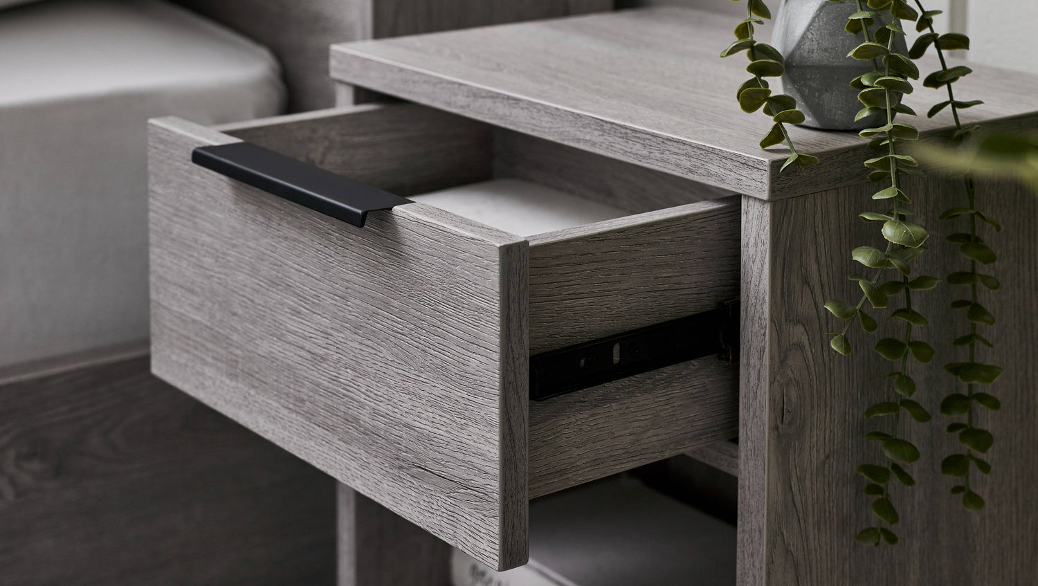• Modern Industrial Aesthetics: The Bali Collection boasts a modern grey oak finish, complemented by striking black legs and handles. This combination not only enhances the rustic charm but also establishes a classic industrial look in your bedroom.