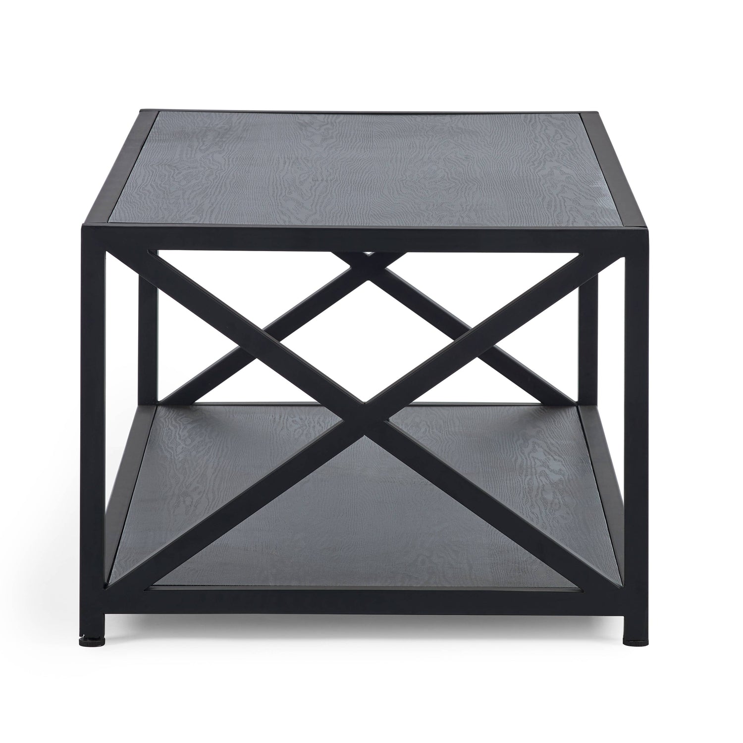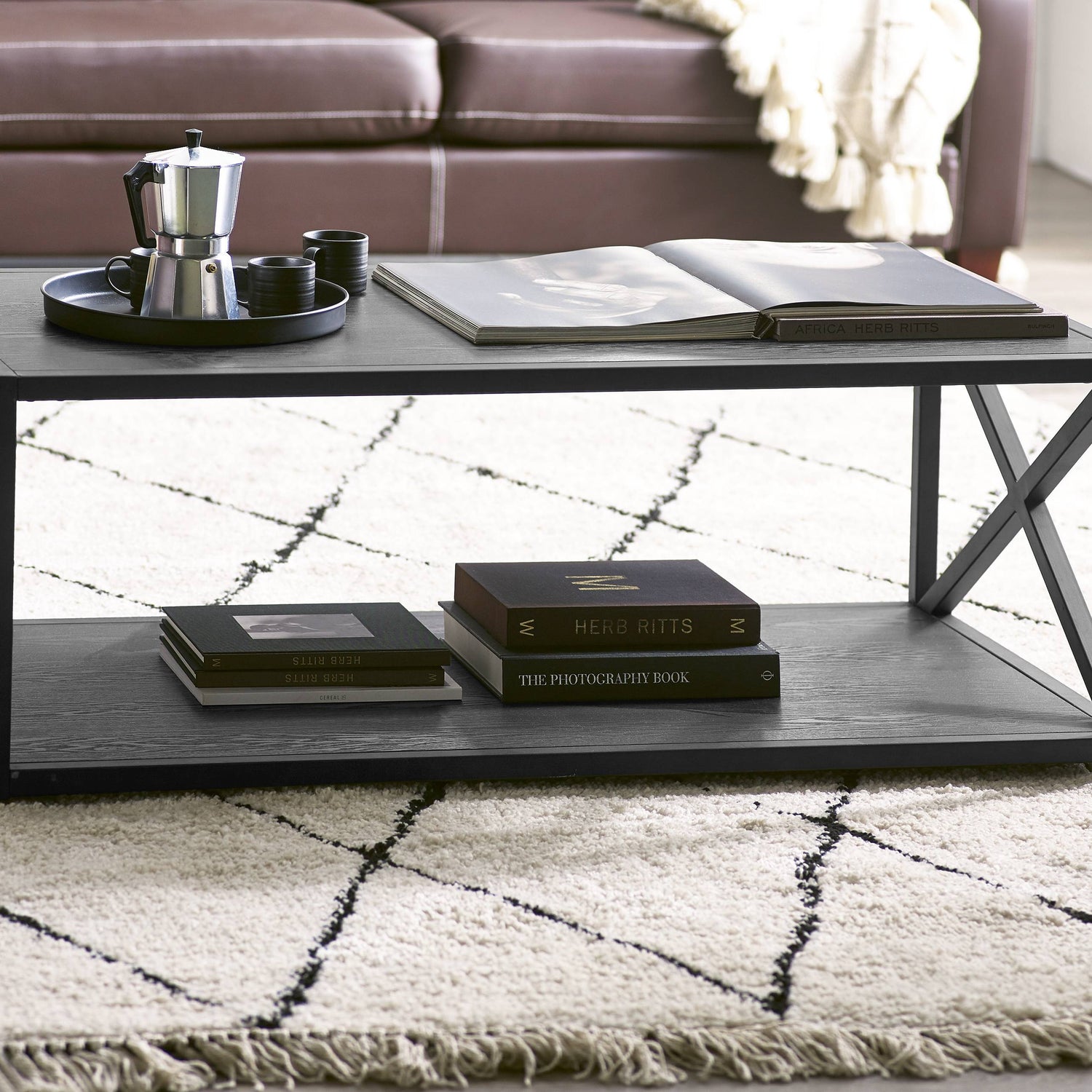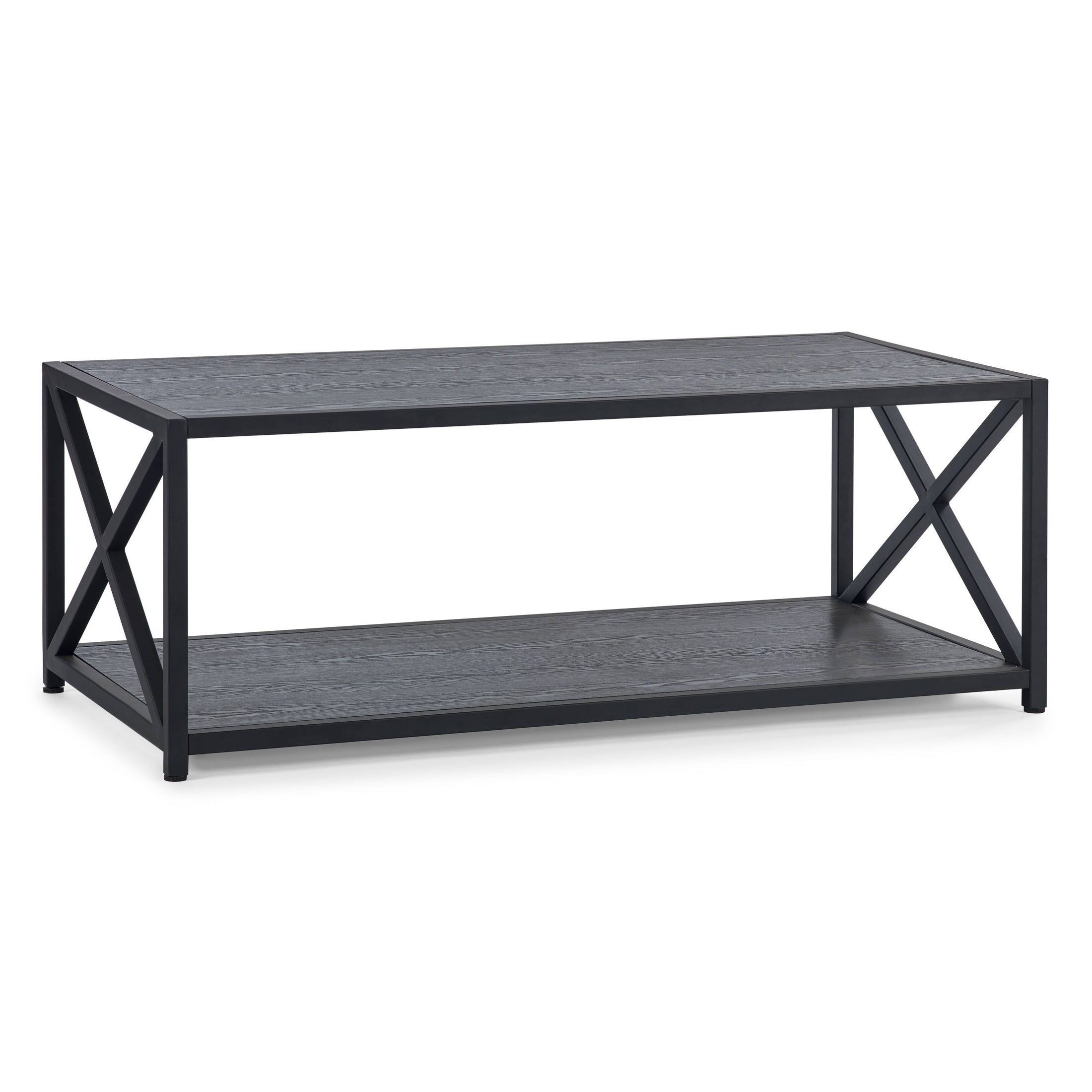 Lima Coffee Table - Black Ash Finish with Cross Frame Design and Storage Shelf