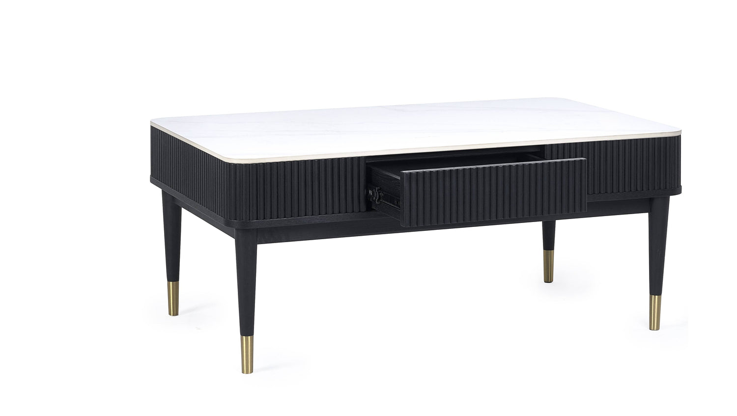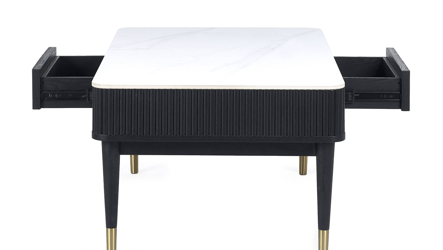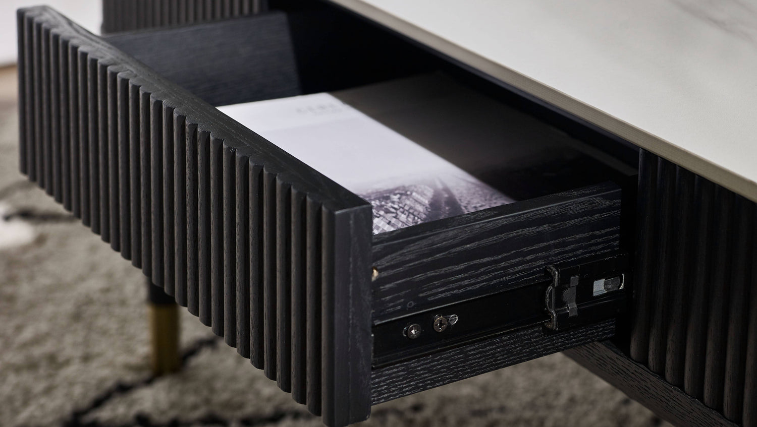 Louis Black Fluted Stone Top Coffee Table with Drawers
