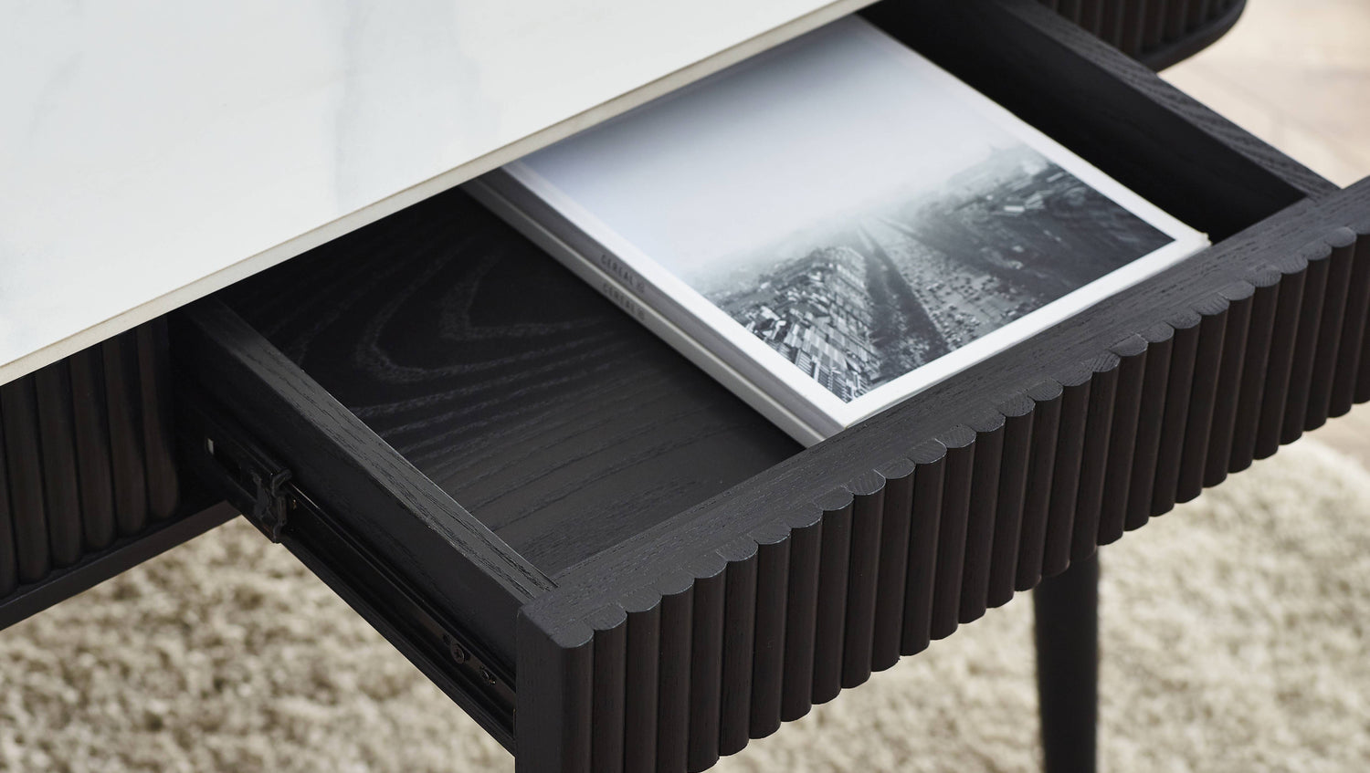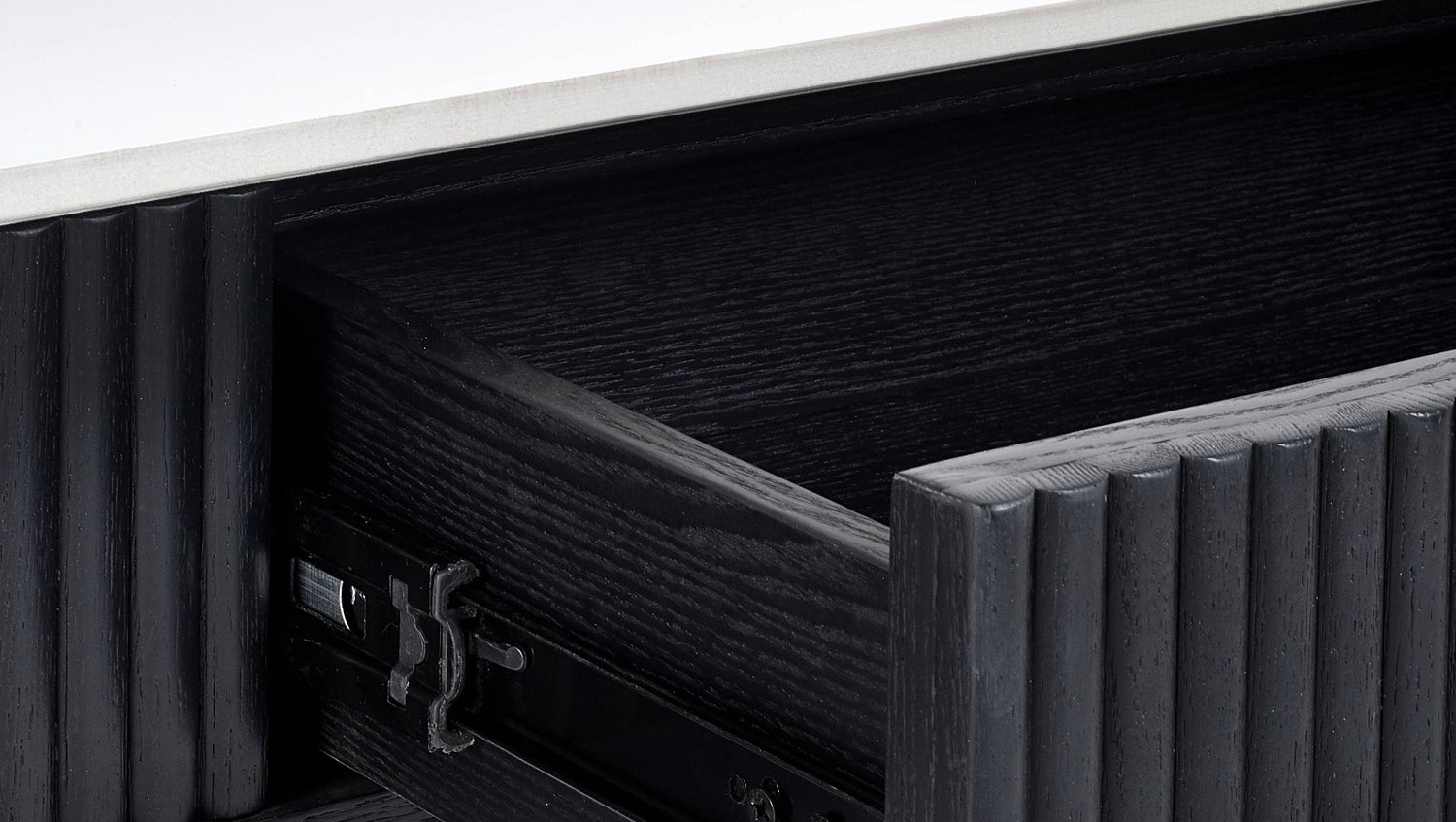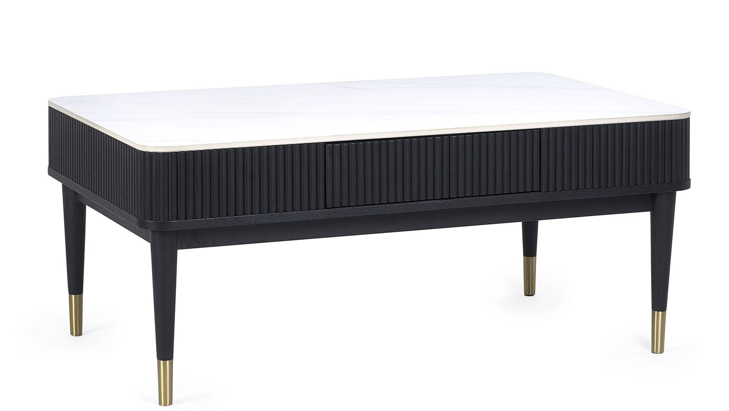 Louis Black Fluted Stone Top Coffee Table with Drawers
