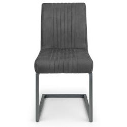 Add a touch of industrial chic to your dining space with the Brooklyn Dining Chair from Julian Bowen. This chair features a sleek, retro design, upholstered in charcoal grey faux leather, providing a sophisticated yet functional accent to any room. The cantilever style gunmetal leg frame enhances the chair's modern industrial aesthetic while offering stable and durable support.