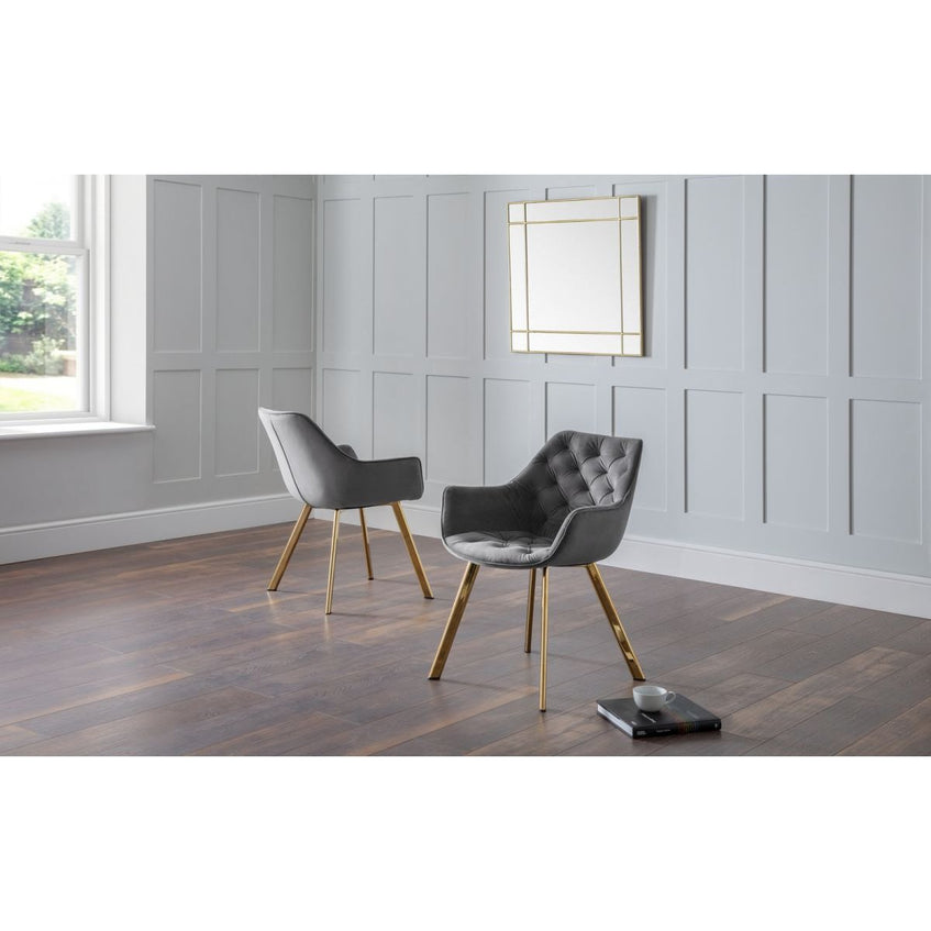 Available in rich blue or sophisticated grey velvet, the Lorenzo Chair allows you to choose the perfect shade to match your décor. -