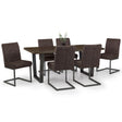 • Six Charcoal Faux Leather Chairs: This set comes with six comfortable dining chairs upholstered in durable charcoal faux leather, each featuring cantilever-style gunmetal legs that enhance the set’s industrial appeal while providing excellent stability.