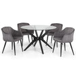 Upgrade your dining or social space with the Hayden Round Table & Hobart Chairs, combining modern elegance with functionality for a stunning and versatile addition to any home.