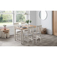 Accompanying the table are the Coxmoor Ivory Dining Chairs, also crafted from lacquered oak, featuring linen seat pads for added comfort. These chairs complement almost any décor, thanks to their classic, timeless design. Together, this set provides the perfect balance of style and comfort, allowing you to enjoy your daily meals in a beautiful dining setting.