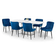Como Extending Dining Table Set with Luxe Blue Velvet Chairs - Modern Elegance Meets Classic Design