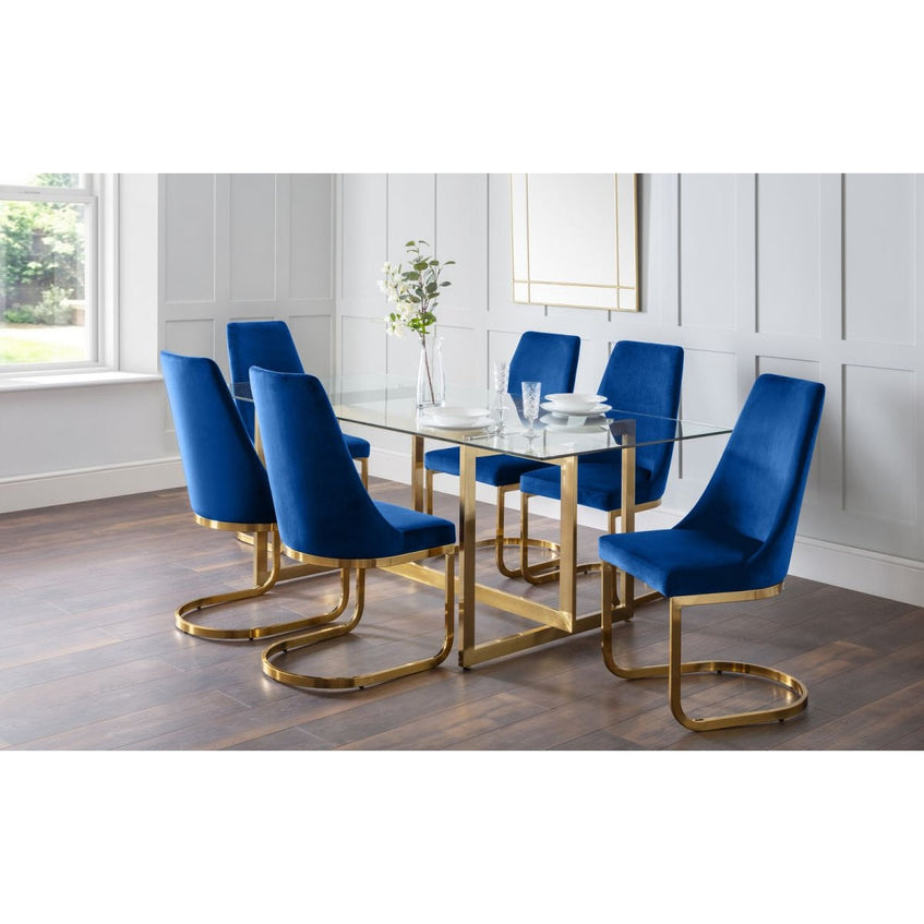 Minori Dining Table & 6 Vittoria Blue Dining Chairs
