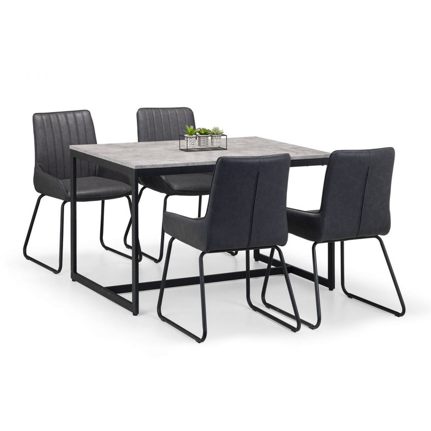 Simplistic in design with a contemporary style, the Staten Dining Table adds a stunning industrial look to any living or dining area. Constructed from a robust black-coated metal frame and complemented by striking concrete effect tops, this table creates a stylish and modern product.