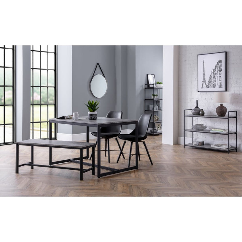 Simplistic in design with a contemporary style, the Staten Dining Table adds a stunning industrial look to any living or dining area. Constructed from a robust black-coated metal frame and complemented by striking concrete effect tops, this table creates a stylish and modern product.