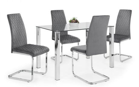 Enzo Dining Table & 4 Calabria Cantilever Velvet Grey Chairs