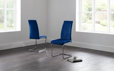 Positano Dining Table & 4 Calabria Cantilever Velvet Blue Chairs