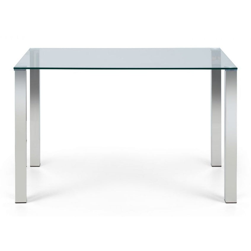 The Enzo Dining Table offers a perfect blend of contemporary style and compact functionality, making it an ideal choice for modern kitchens and dining spaces. Featuring a strong and sturdy polished chrome base, paired with a 10mm clear tempered glass top, this table exudes sophistication while maintaining durability. Its clean and crisp design provides versatility, effortlessly complementing a range of dining chair styles.