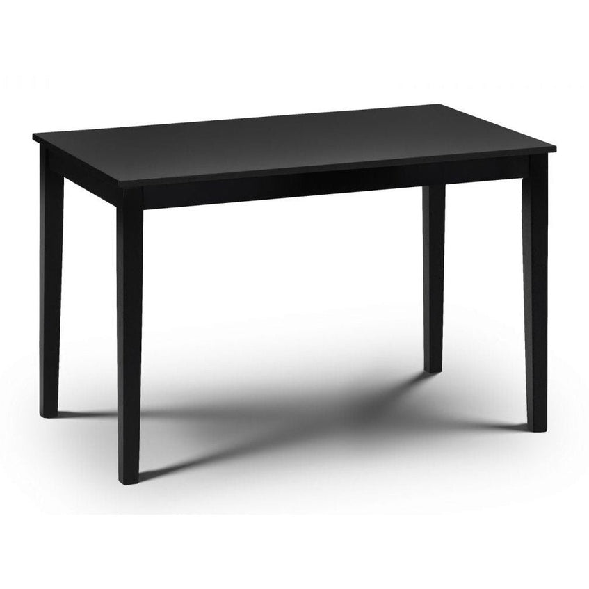 The Hudson Dining Table is crafted from lacquered particleboard and rubberwood, offering a simple, space-saving design that meets the needs of contemporary homes. Finished in a sleek block black color, this table effortlessly coordinates with a wide range of décor styles.