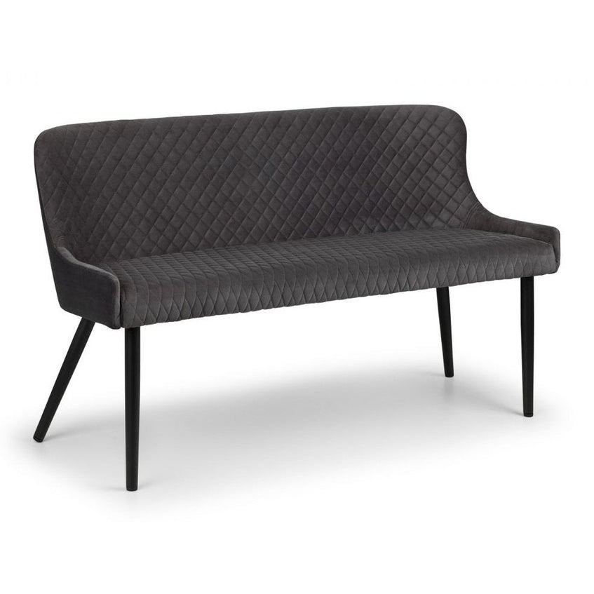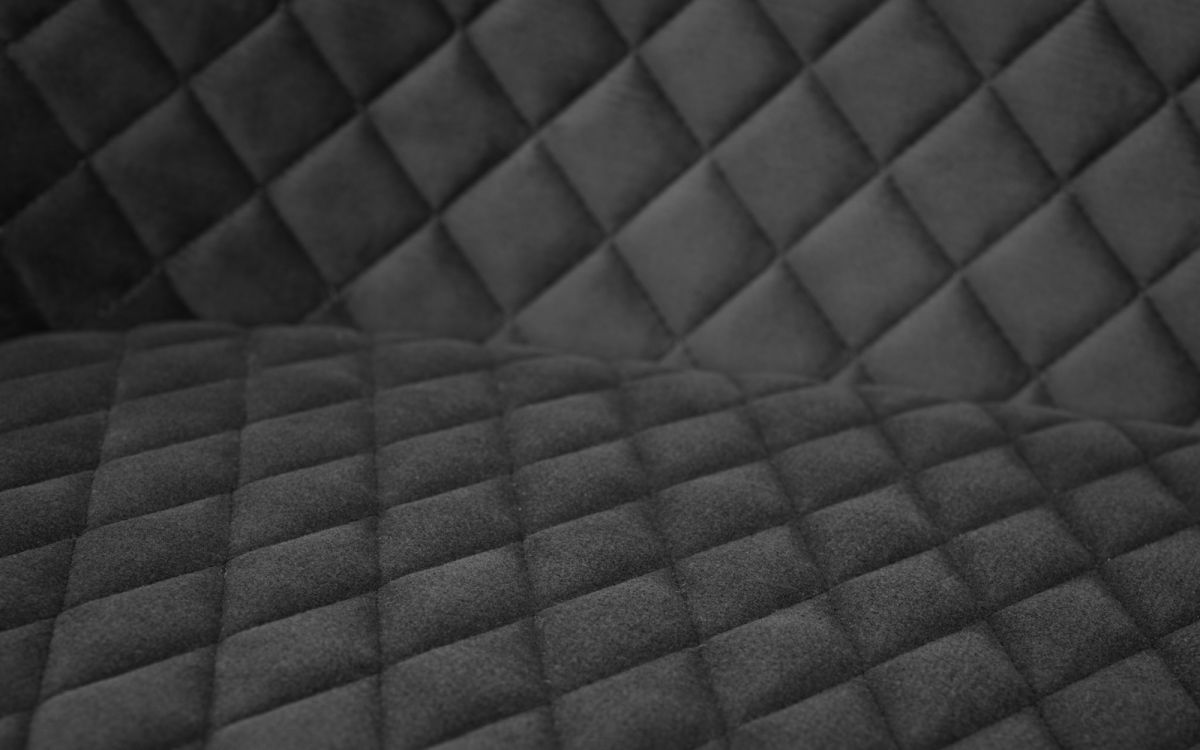 - Upholstered in luxurious grey velvet fabric with quilted detailing