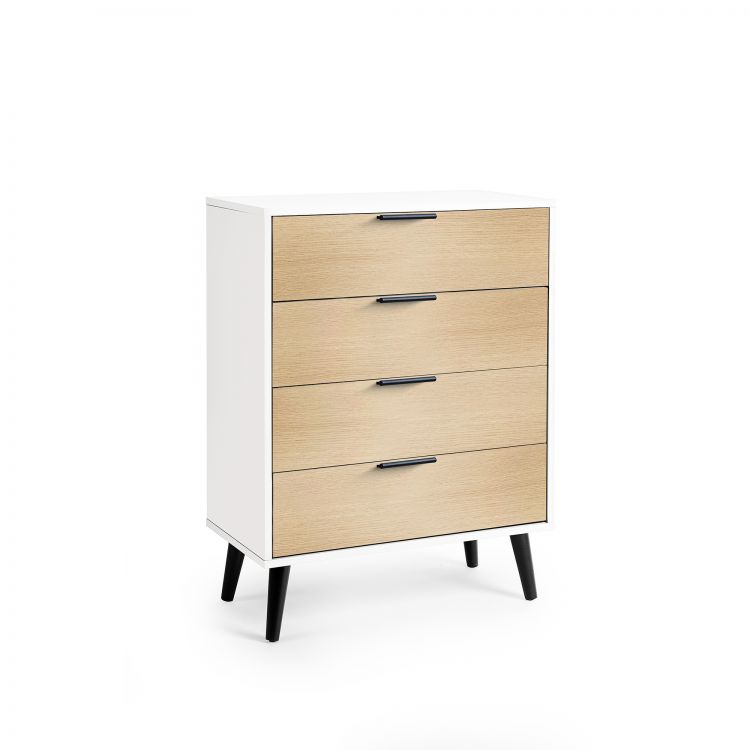 Alba 4 Drawer Wide Chest in White and Oak