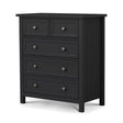 The Maine 3+2 Drawer Chest embodies elegant New England style, featuring an exquisite anthracite lacquered finish that enhances any bedroom decor. With characteristic side paneling and detailed chamfered cabinetry, this chest creates a soothing and refined aesthetic with timeless appeal. Delicate pewter handles provide the perfect finishing touch, offering great storage with three large drawers topped with two smaller drawers.