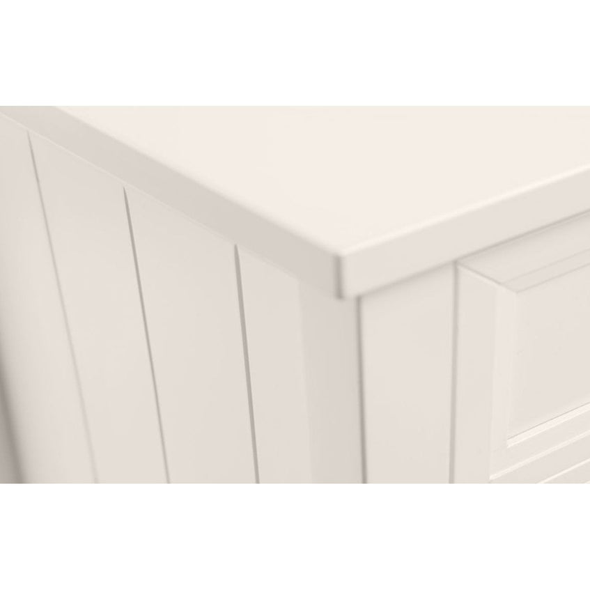 The Maine 3 Drawer Chest exemplifies elegant New England style, featuring an exquisite surf white lacquered finish that enhances any bedroom decor. The combination of characteristic side paneling and detailed chamfered cabinetry creates a soothing and refined aesthetic with timeless appeal. Delicate pewter handles provide the perfect finishing touch, offering easy access to three spacious storage drawers.