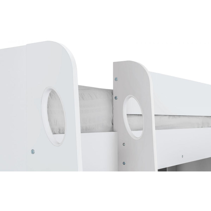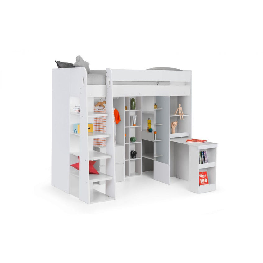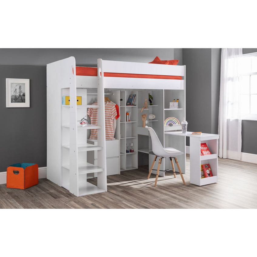 Finished in a crisp, white wrap, the Aurora High Sleeper boasts a clean and contemporary look that complements any bedroom décor. Its neutral palette makes it easy to blend with existing furniture and color schemes, ensuring it will be a timeless addition to your home.
