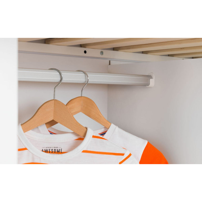 This high sleeper isn’t just a bed; it’s a complete bedroom solution. It includes multiple storage options such as drawers for clothing and essentials, shelves for books and toys, and a hanging rail for additional wardrobe space. The pull-out desk, equipped with cable holes, provides a convenient area for study and creative projects, making it ideal for homework or arts and crafts.