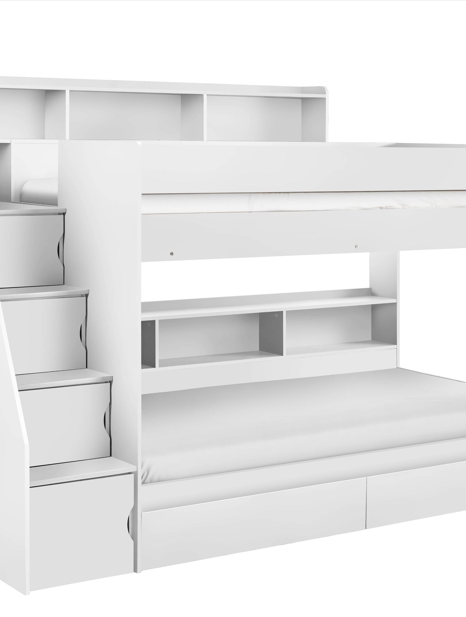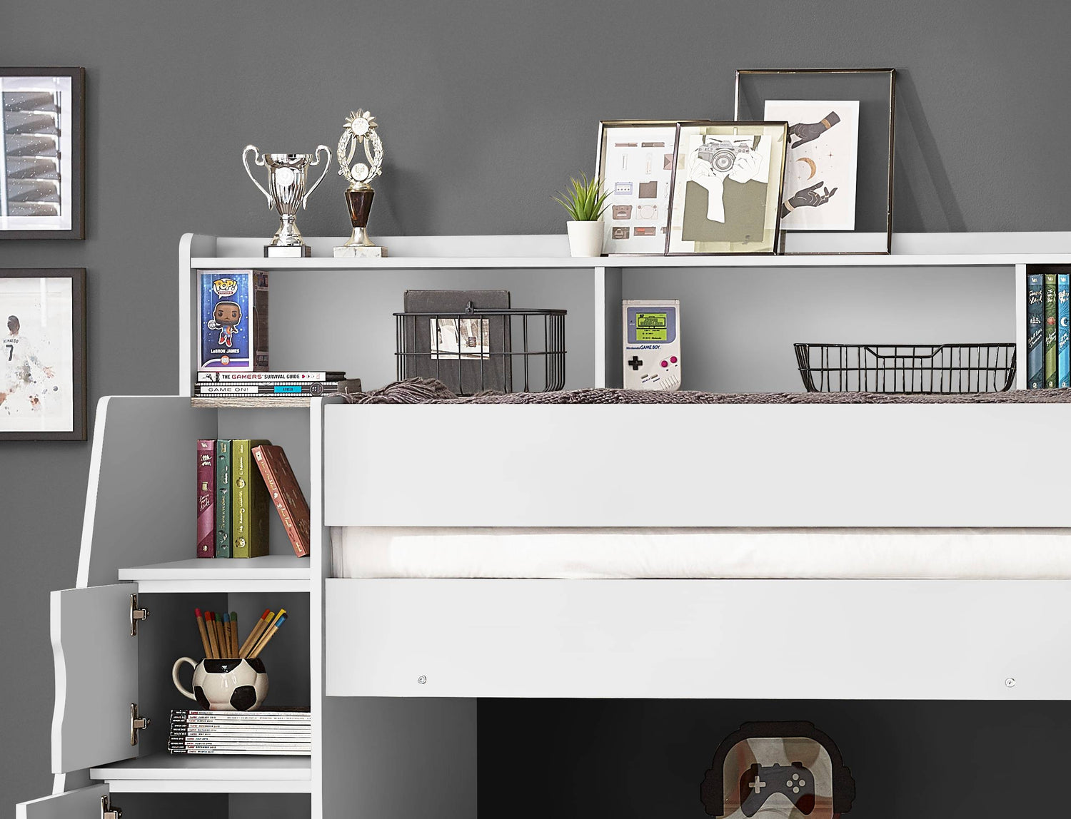 - Innovative Storage Solutions: The Camelot Bunk Bed features spacious storage options integrated into every part of its design. From the stairs to the under-bunk drawers, this bed ensures all your storage needs are met without sacrificing floor space.