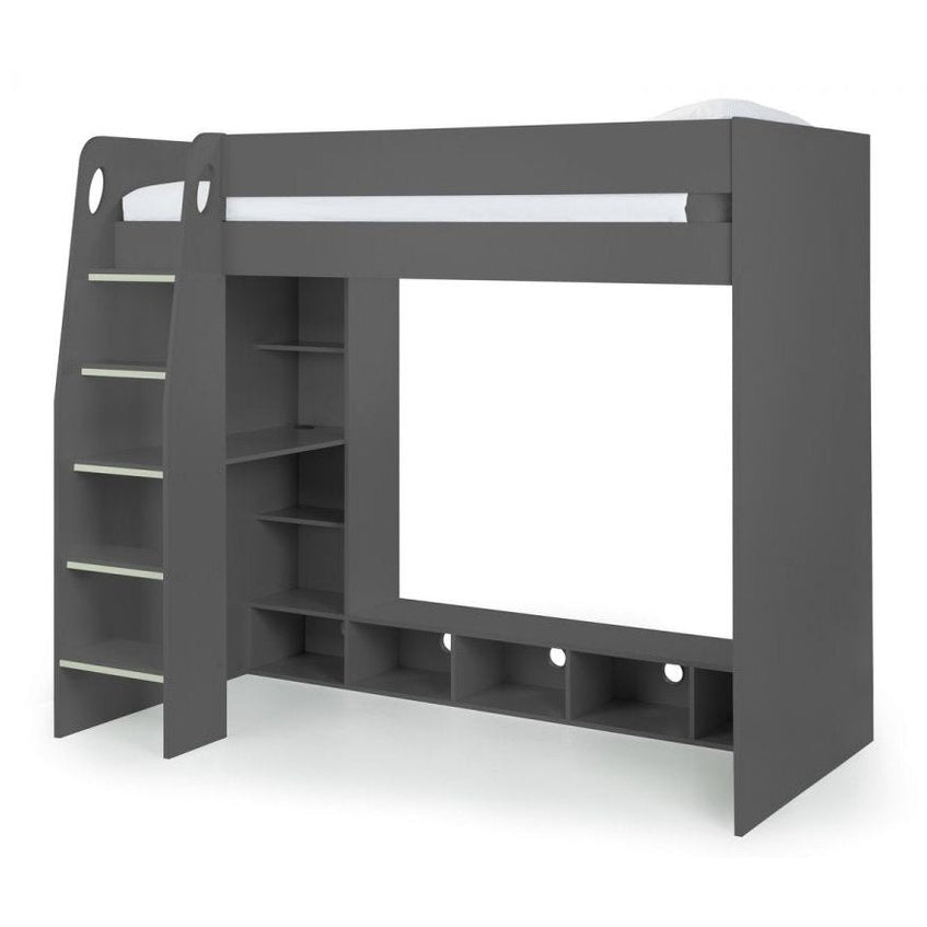 The Nebula Gaming Bed offers the perfect solution for teenage gamers, combining style, functionality, and comfort all in one. This modern gaming bed features a large wall space for a TV, a desk designed to hold a monitor, and shelving for storing games and accessories, making it the ideal gaming hub. Available in a choice of Anthracite, White, or Grey Oak finishes, the Nebula Gaming Bed is designed to complement any bedroom decor. Whether sleeping, playing, or streaming, this bed has everything a gamer could need.