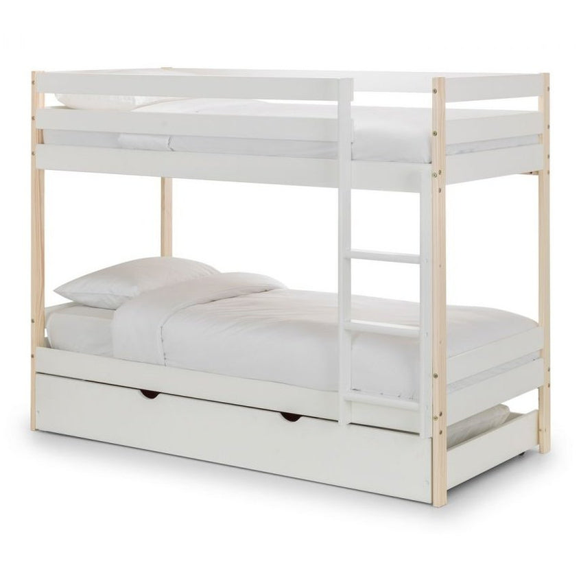 The Nova Bunk Bed offers a stylish and space-saving solution for shared bedrooms or sleepovers. Featuring a stunning 2-tone white and pine finish, this classic design provides valuable activity space while only taking up the footprint of a single bed, making it ideal for smaller bedrooms.