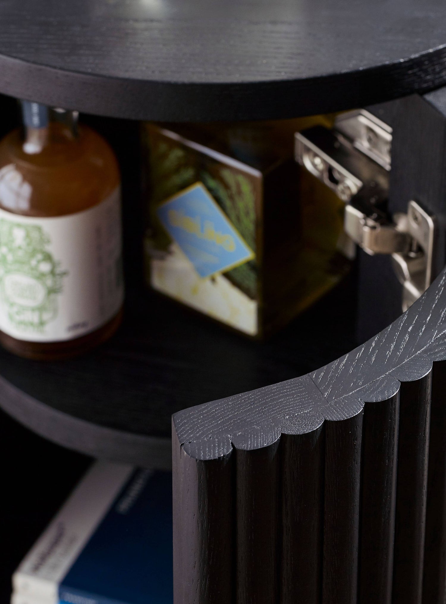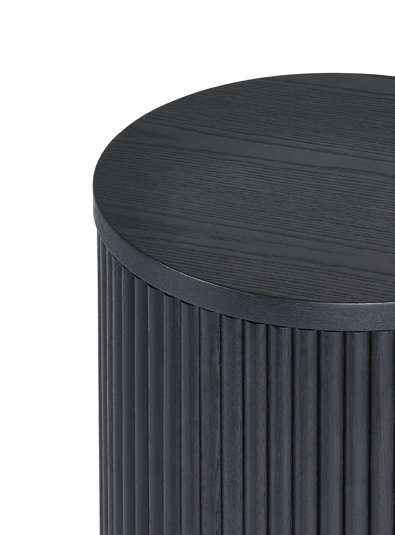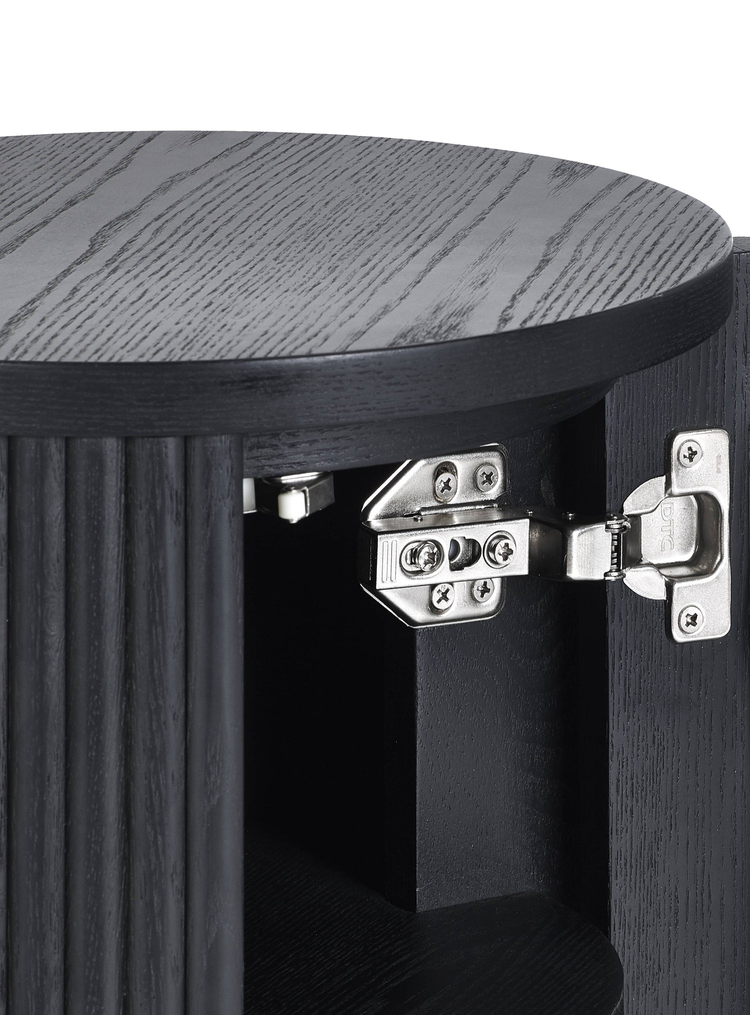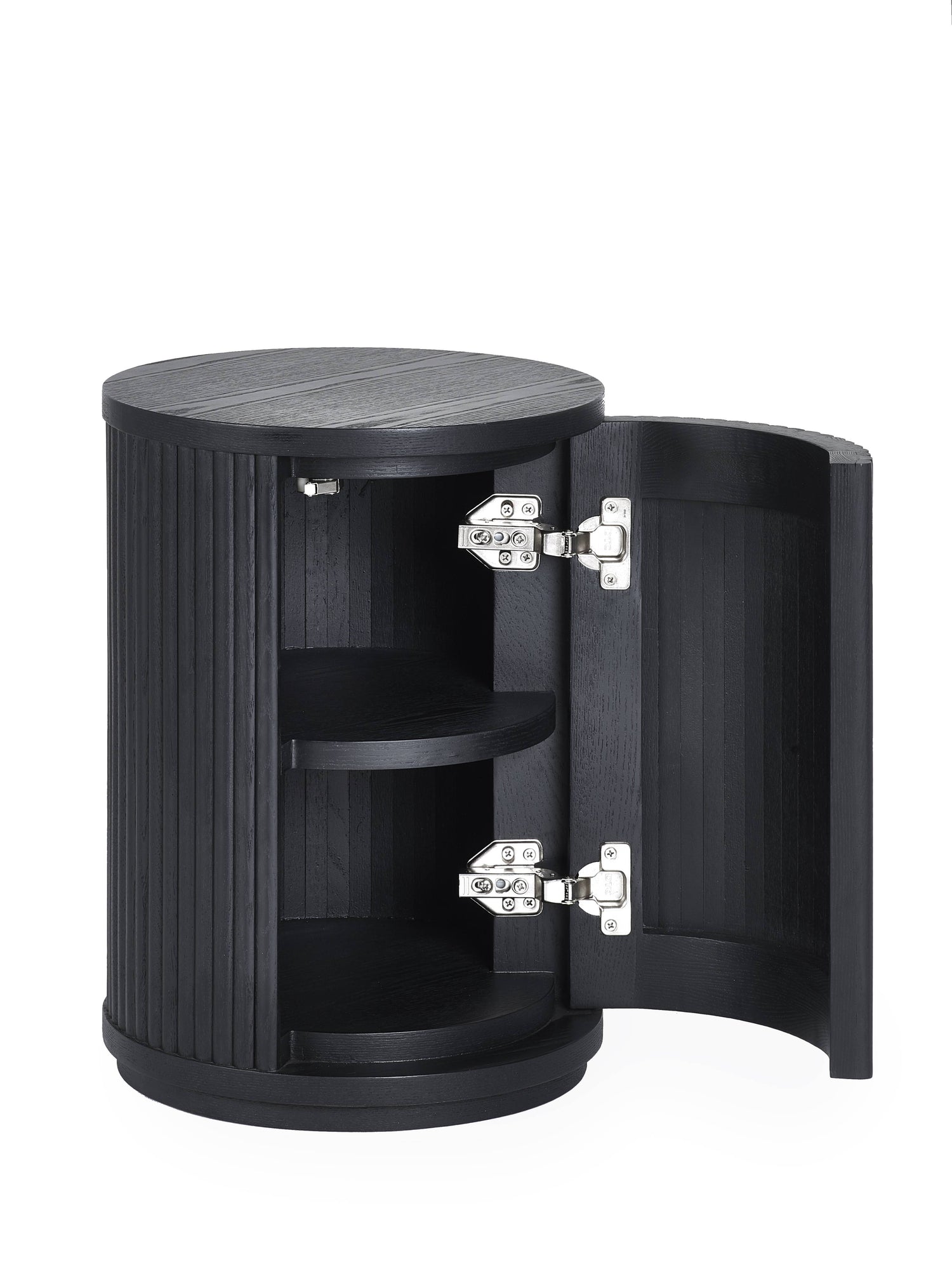 Experience timeless elegance with the Louis Side Table in Black, a stunning blend of sophistication and functionality. This circular masterpiece, adorned with intricate fluted detailing, serves as a luxurious focal point in any living space. Finished in a sleek matt black, it exudes contemporary charm while seamlessly blending with various décors. The push-touch door reveals hidden shelving space, offering a discreet and stylish storage solution for your essentials. Designed for effortless setup, this side table lets you indulge in instant elegance and practicality with minimal assembly required.