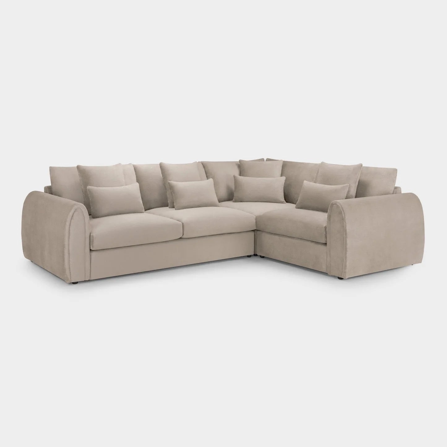 The Mirabel Large Corner Sofa in rich mocha velvet is where style meets indulgent comfort. Featuring gracefully curved arms and deep, plush cushions, this contemporary design creates a bold yet inviting statement in any living space. Upholstered in soft, easy-care velvet, the Mirabel offers both durability and luxury, making it perfect for busy households.