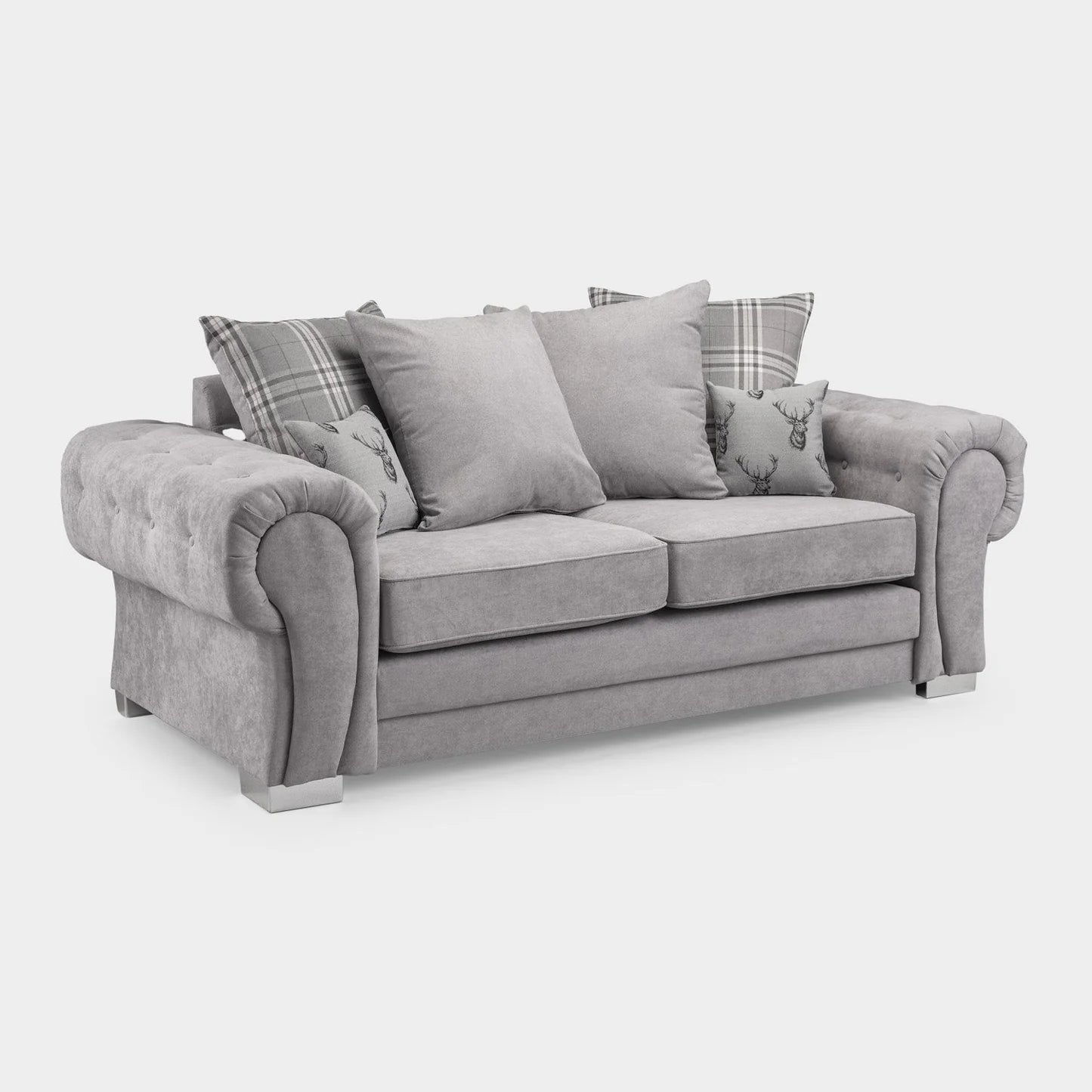 The Verona 3 Seater Sofa is one of our best-selling designs, loved for its perfect balance of classic charm and modern style. Upholstered in soft, durable grey polyester fabric and filled with high-density foam cushions, it offers both long-lasting comfort and everyday practicality.