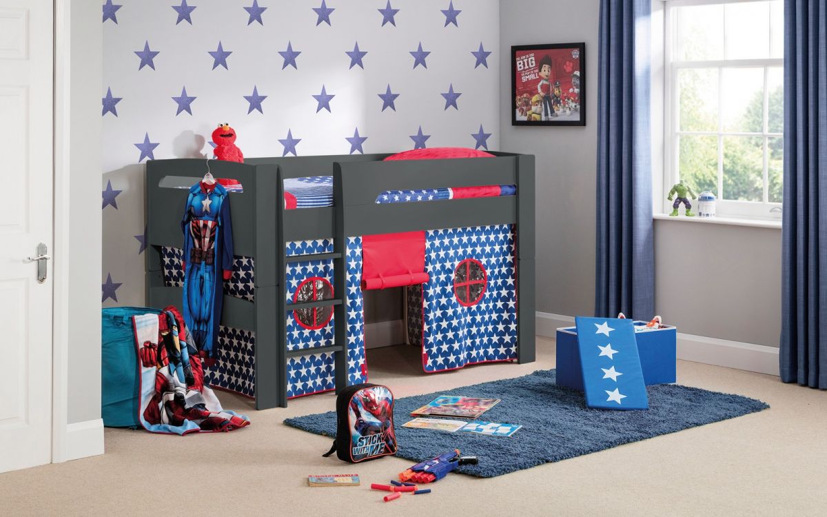 Elevate your child's bedroom with the Pluto Midsleeper, where style meets practicality, creating a fun and functional space for your little one.
