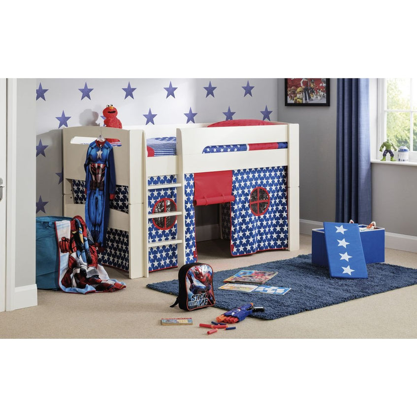 Elevate your child's bedroom with the Pluto Midsleeper, where contemporary style meets practicality, creating a fun and functional space for your little one to enjoy.