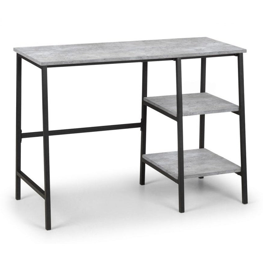 Simplistic in design with a contemporary style, the Staten Desk adds a stunning industrial look to any home office. Constructed from a robust black-coated metal frame and complemented by striking concrete effect tops, this desk creates a stylish and modern workspace.