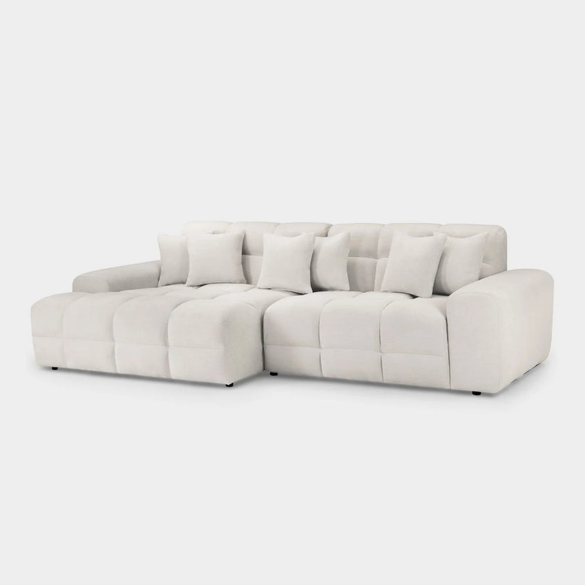 The Jacob Sofa is a best-selling design that blends deep-seated comfort with bold, modern styling. Upholstered in a luxurious fabric with sumptuous quilted seats, it’s built for lounging — whether you’re stretching out solo or hosting guests. Featuring generously padded arms, plush scatter cushions, and a detailed quilted back, the Jacob range adds an instant statement to any living room.