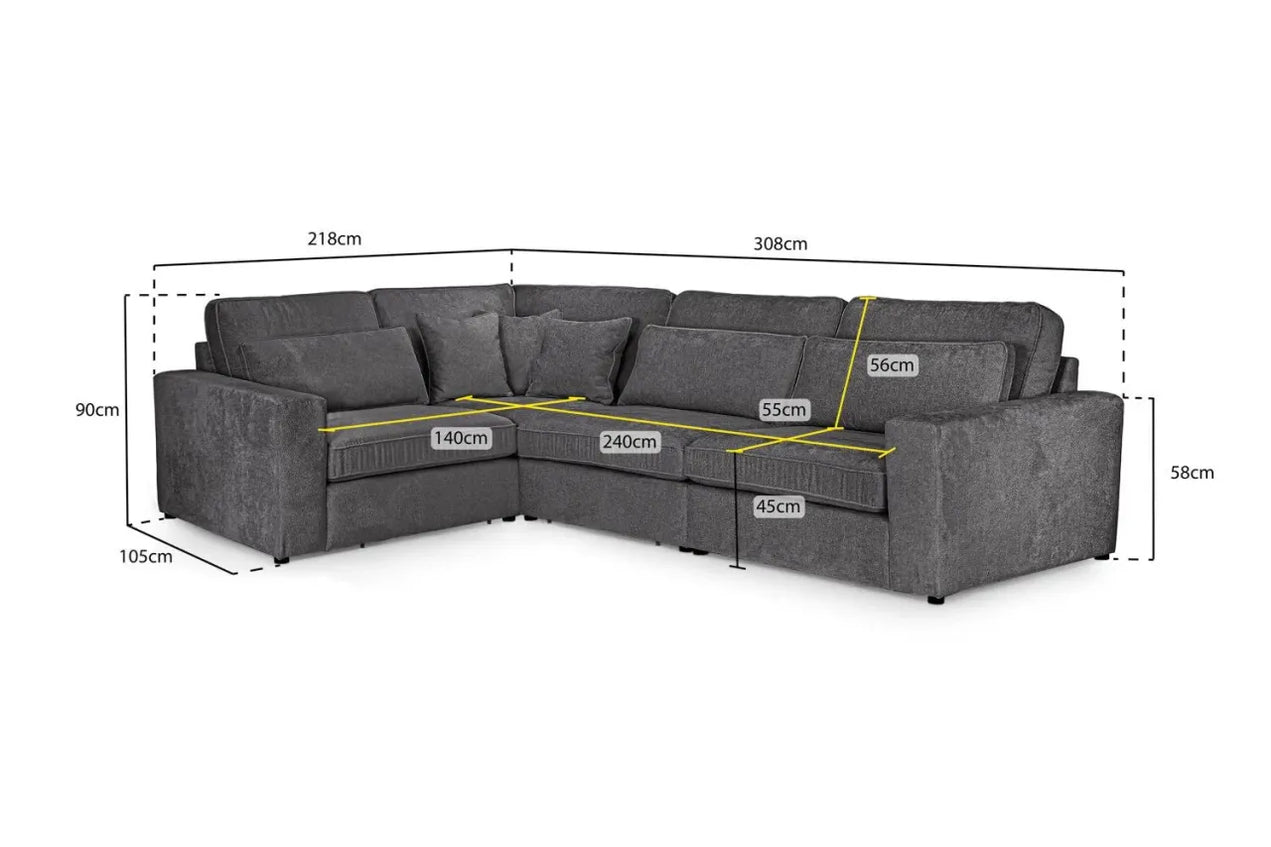 DimensionsLength 308cm x 218cm, Depth 105cm, Height 90cm