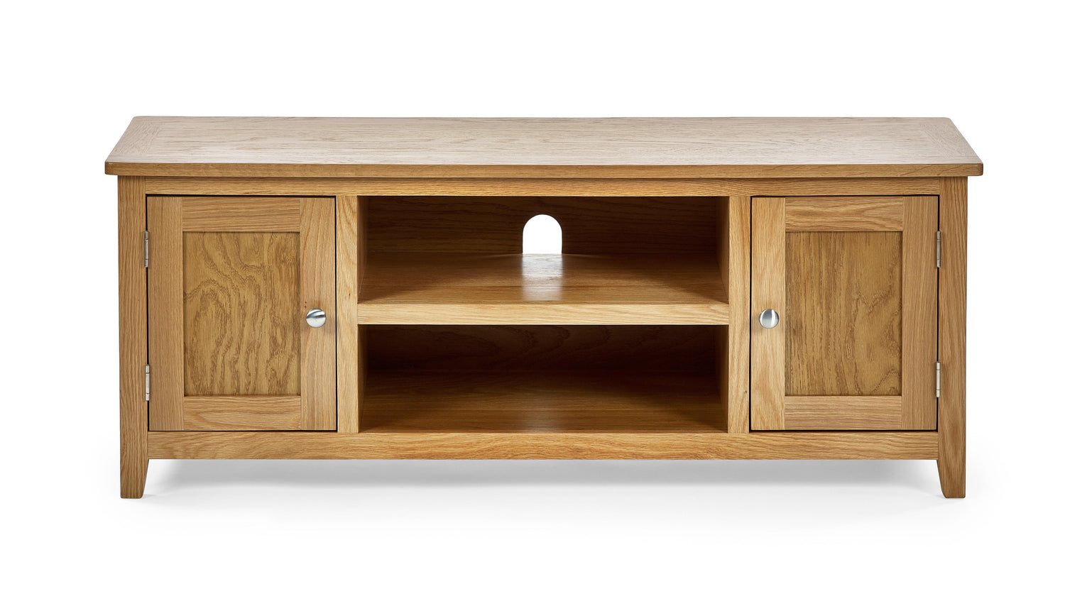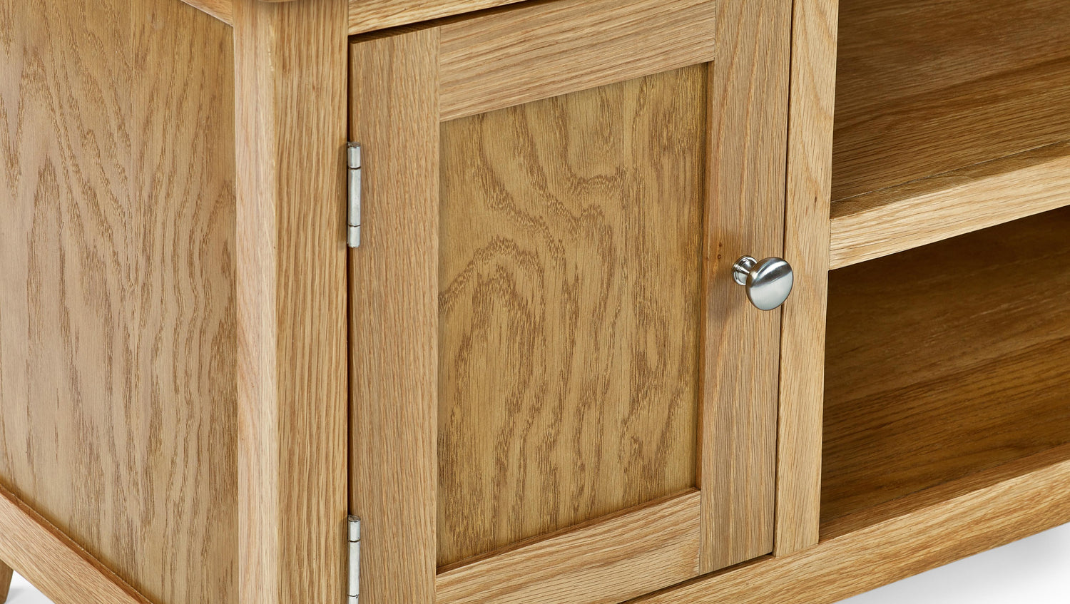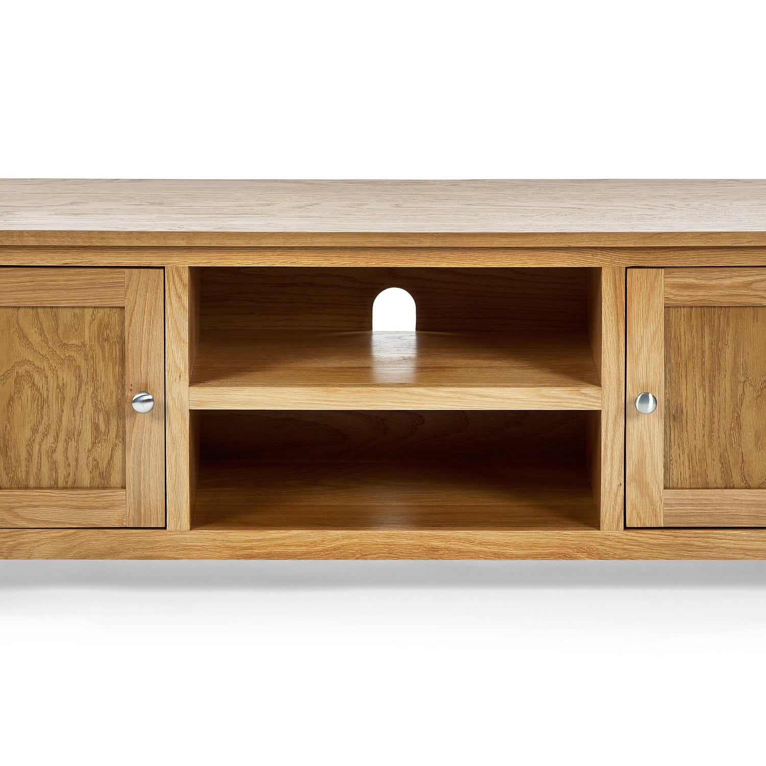 The Mallory Widescreen TV Unit is the perfect addition to modern and traditional living spaces alike. Crafted from solid oak and oak veneers, this unit boasts a clean, timeless design that enhances the elegance of your home.
