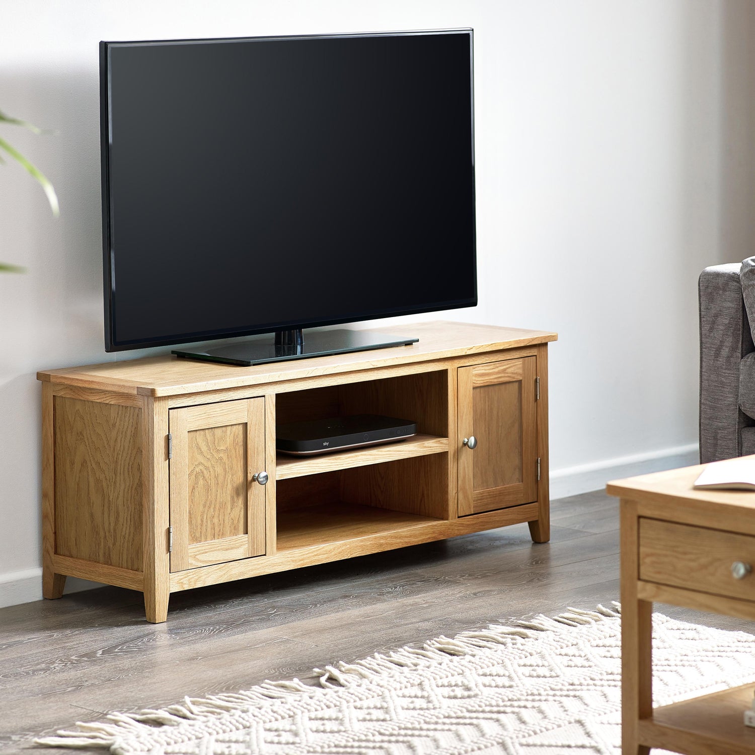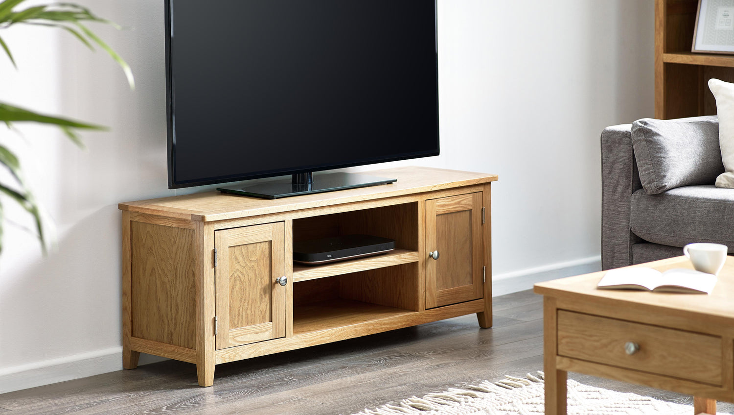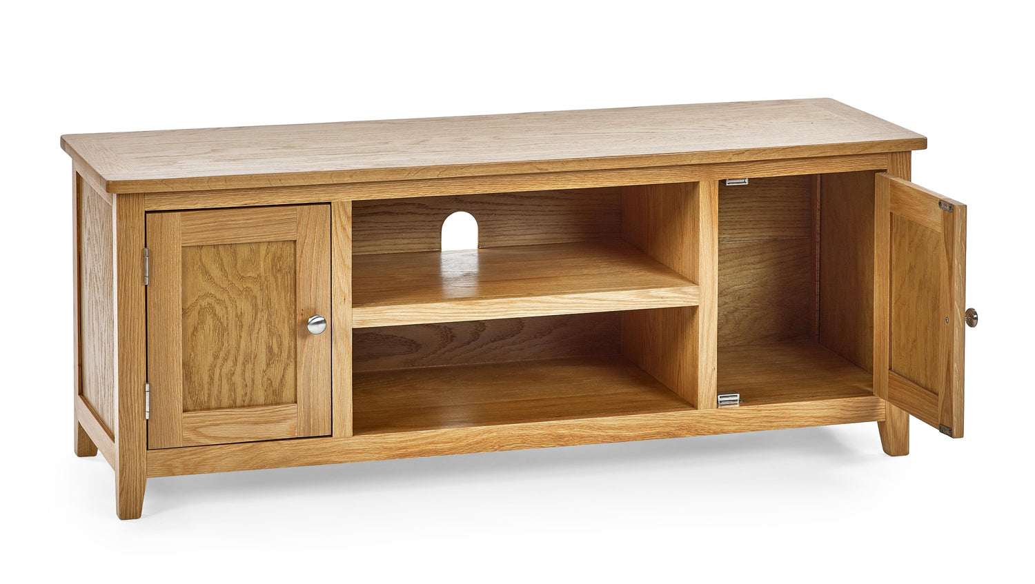 The Mallory Widescreen TV Unit is the perfect addition to modern and traditional living spaces alike. Crafted from solid oak and oak veneers, this unit boasts a clean, timeless design that enhances the elegance of your home.