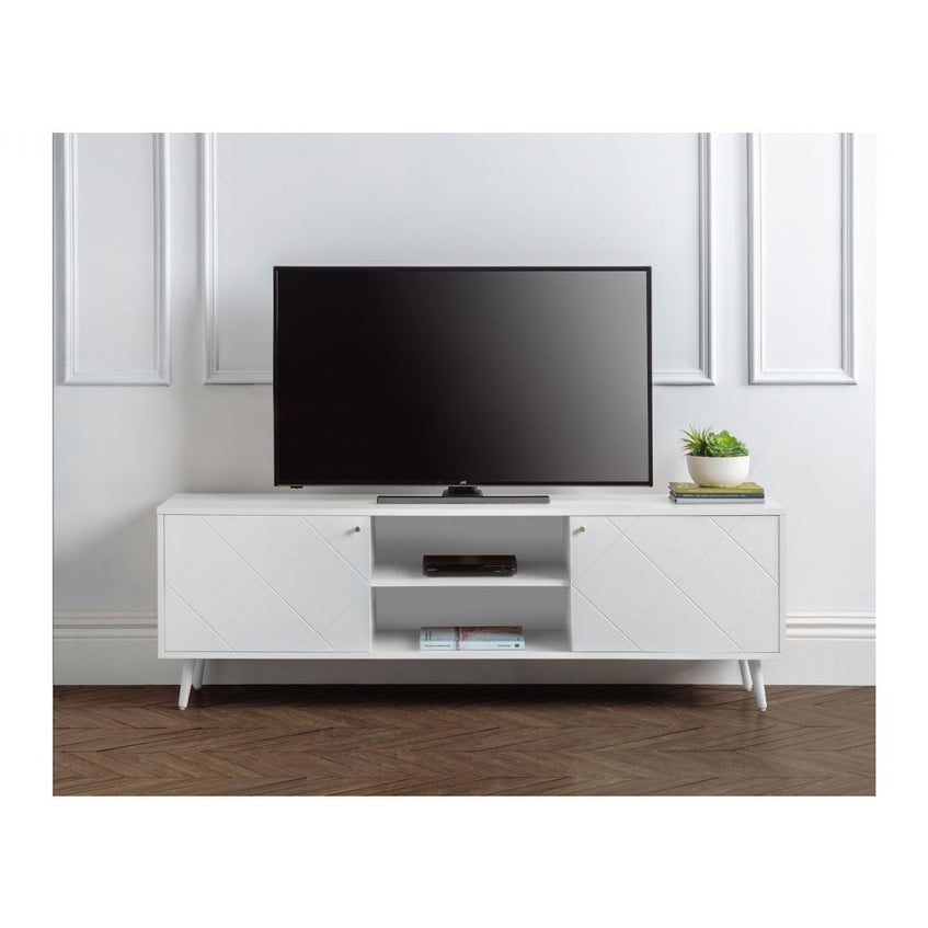 The Moritz TV Cabinet is the perfect fusion of modern elegance and practical functionality. A subtle yet striking linear pattern adds a sleek, contemporary touch, making this piece a focal point in any living space. Featuring two open shelves equipped with cable management holes for neat organization and two white cupboard doors, accented with stunning gold handles, the Moritz TV Cabinet effortlessly combines style with convenience. Available in white or grey, this TV cabinet enhances any modern décor, offering a blend of functionality and aesthetic appeal.