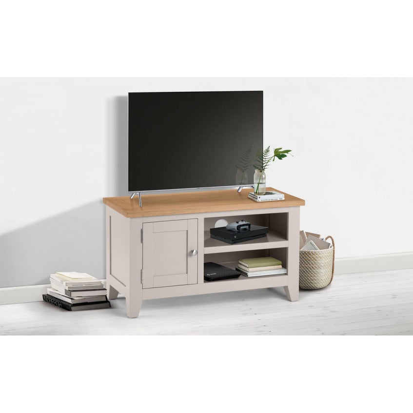 The Richmond TV Unit is a stylish addition to any living space, featuring an immaculate painted soft Elephant Grey finish complemented by a beautiful pale oak top. Crafted from high-grade American White Oak solids and veneers, this TV unit combines superior quality materials with a classic design, ensuring it remains a timeless piece suitable for both traditional and contemporary décor.