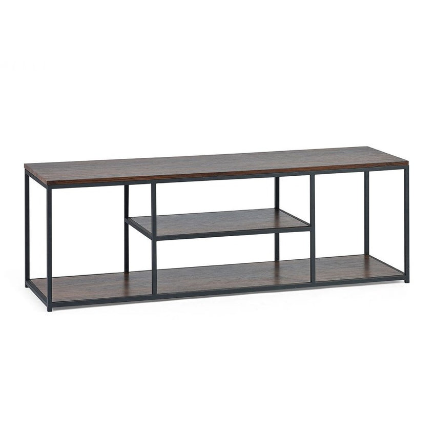 Crafted with a robust black coated metal frame, this unit ensures durability and stability for your television and media devices.