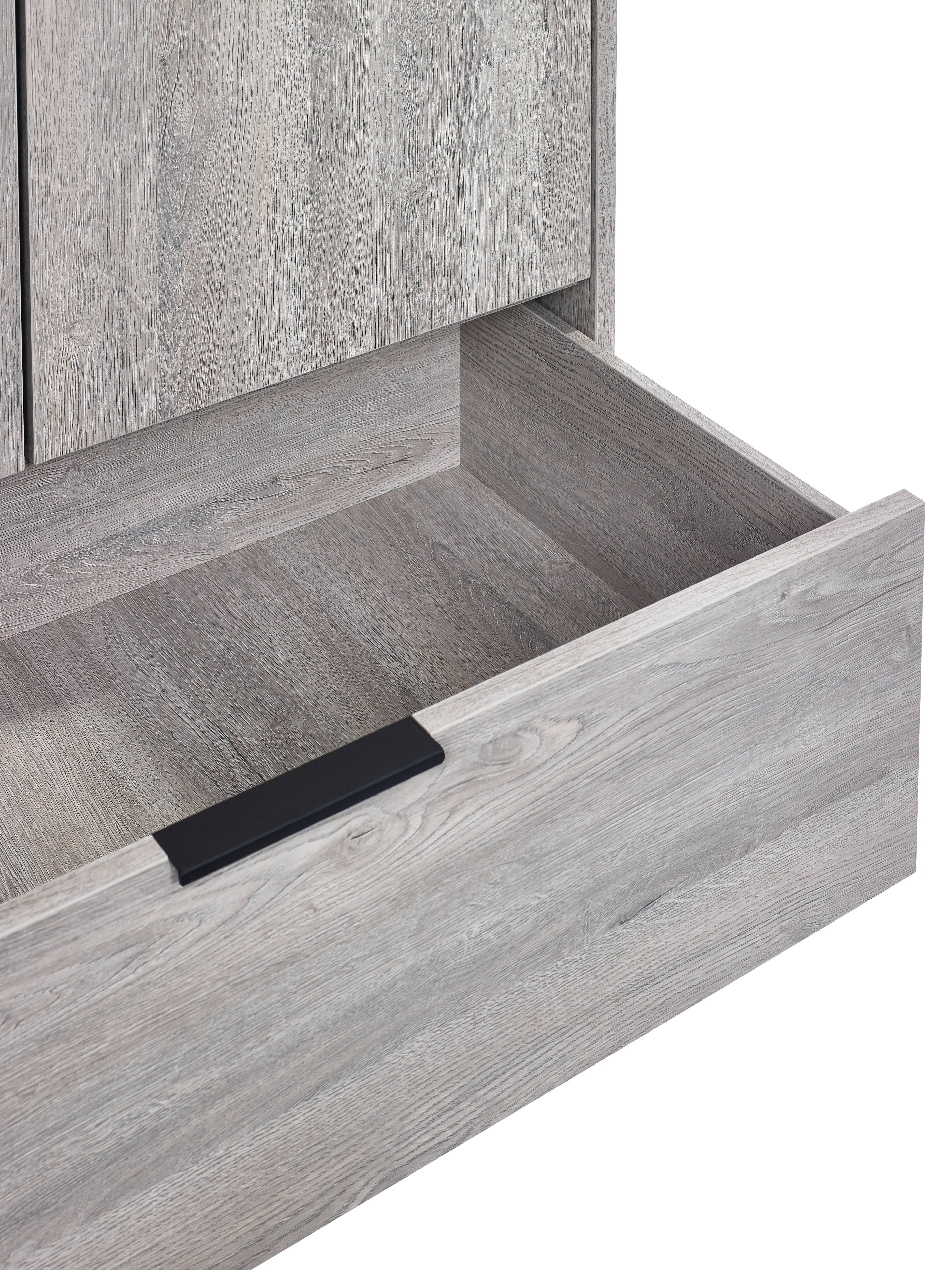 - Modern Industrial Aesthetics: The Bali Collection boasts a modern grey oak finish, complemented by striking black legs and handles. This combination not only enhances the rustic charm but also establishes a classic industrial look in your bedroom.
