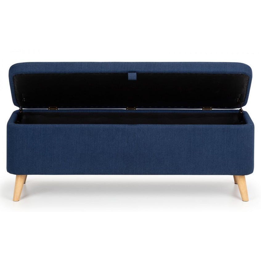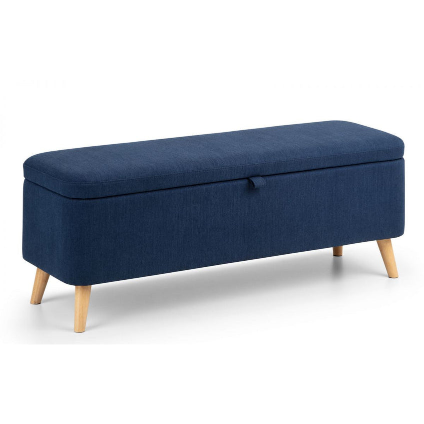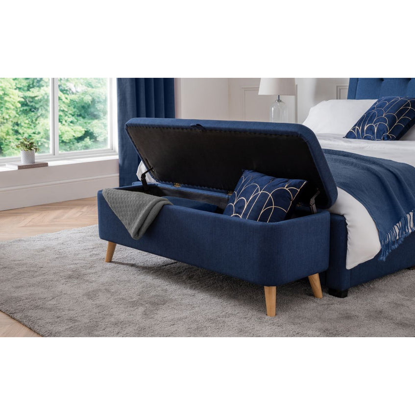 Perfectly proportioned to sit at the end of the Julian Bowen Astrid bed, this contemporary Astrid blanket box is upholstered in a crisp blue linen fabric. This contemporary, Scandinavian design fits perfectly with a wide range of bedroom décor. The perfect storage for your cushions, linens, or duvets with the ease of soft close hinges.