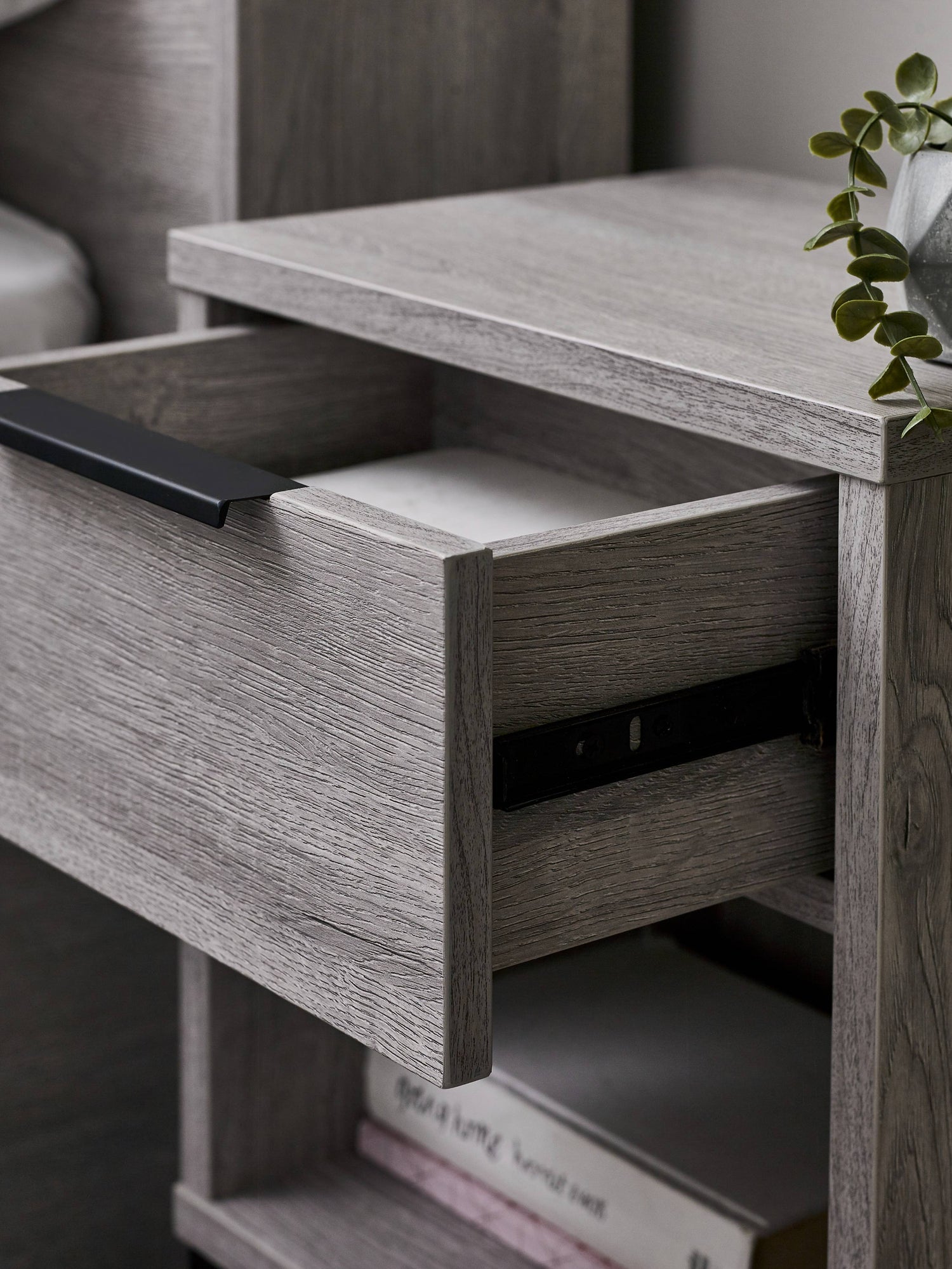 • Modern Industrial Aesthetics: The Bali Collection boasts a modern grey oak finish, complemented by striking black legs and handles. This combination not only enhances the rustic charm but also establishes a classic industrial look in your bedroom.