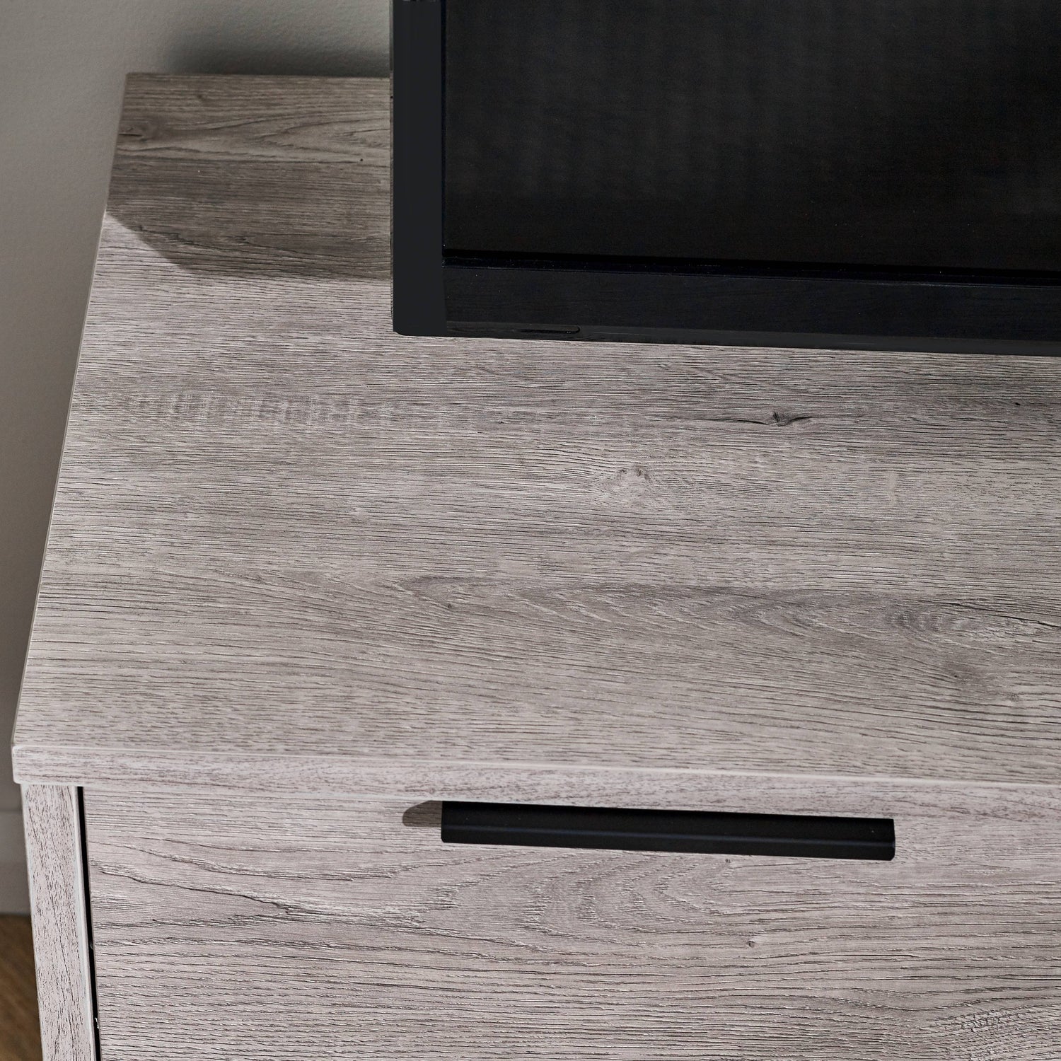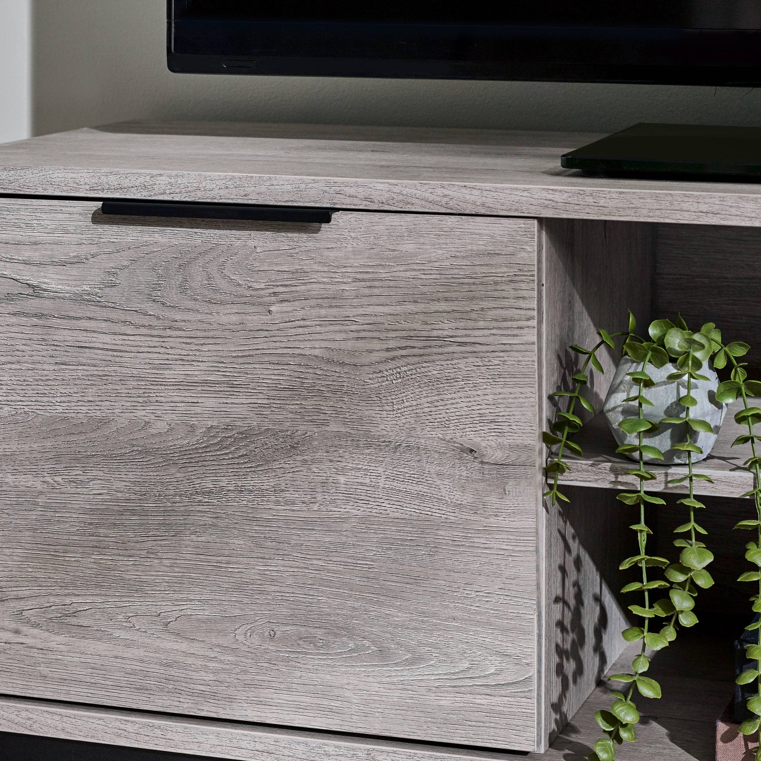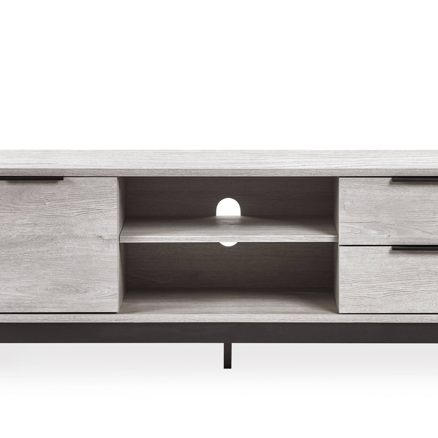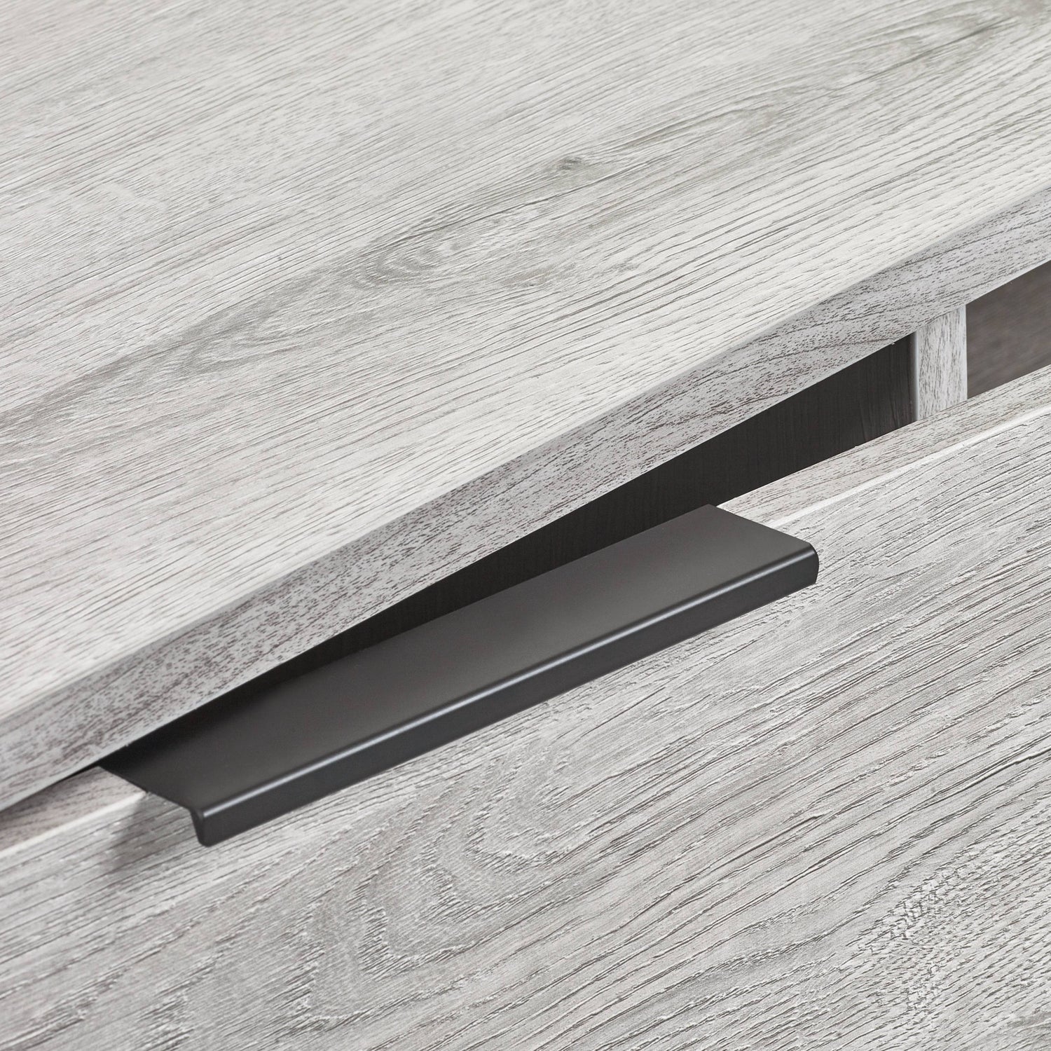 • Sophisticated Grey Oak Finish: The Bali TV Unit showcases a modern grey oak finish that adds a sophisticated touch to your living room. The contrasting black legs and handles enhance its industrial aesthetic, offering a striking visual balance that complements any décor.