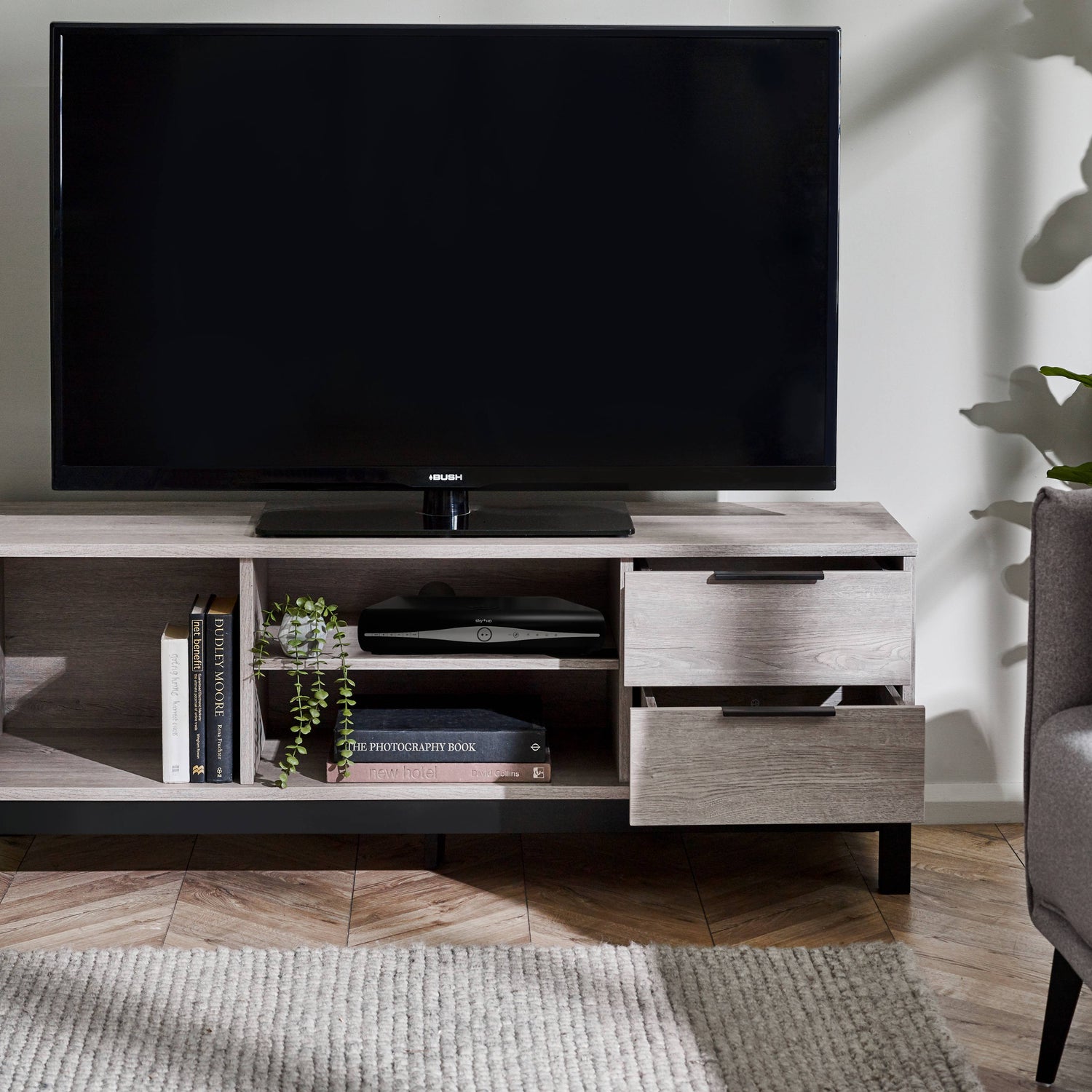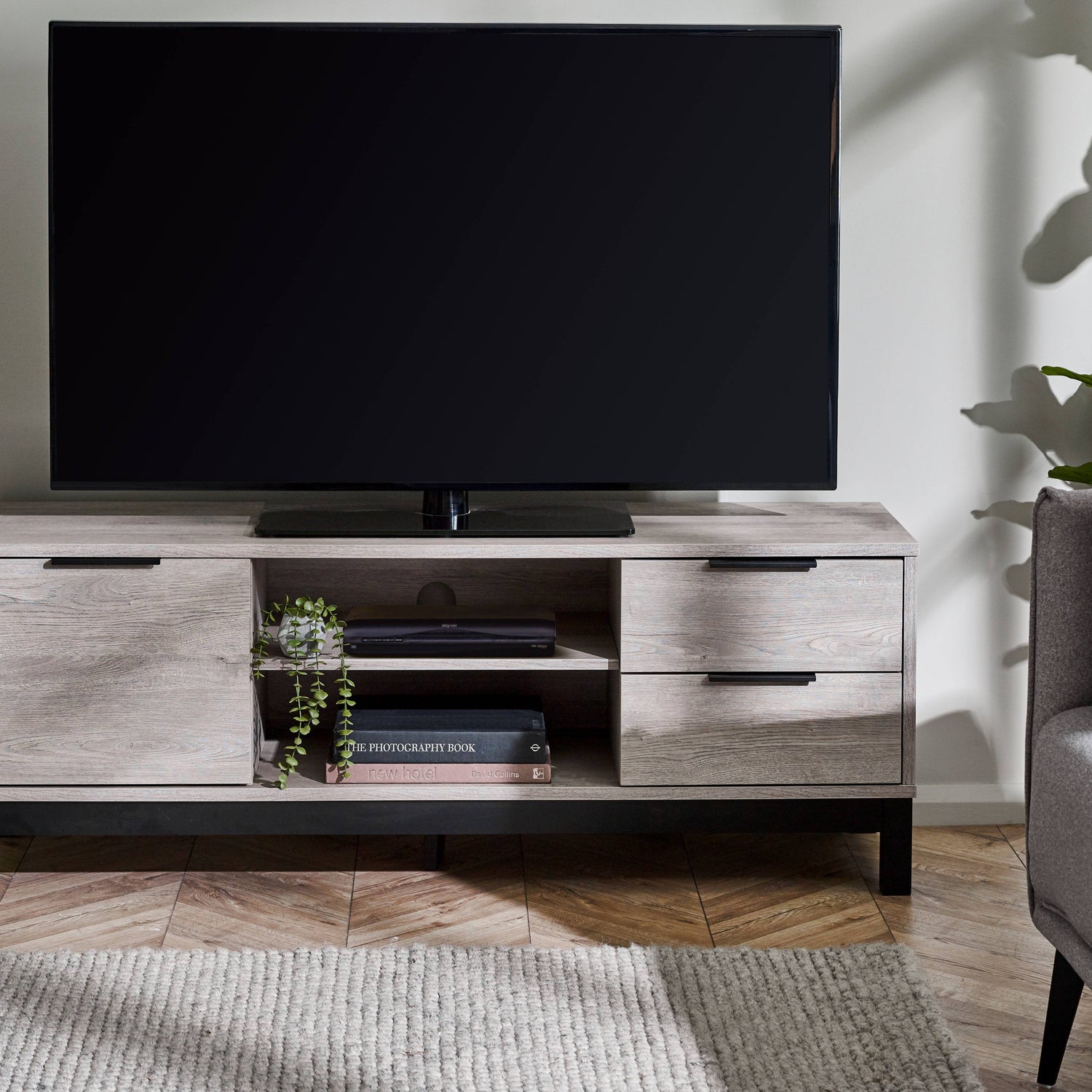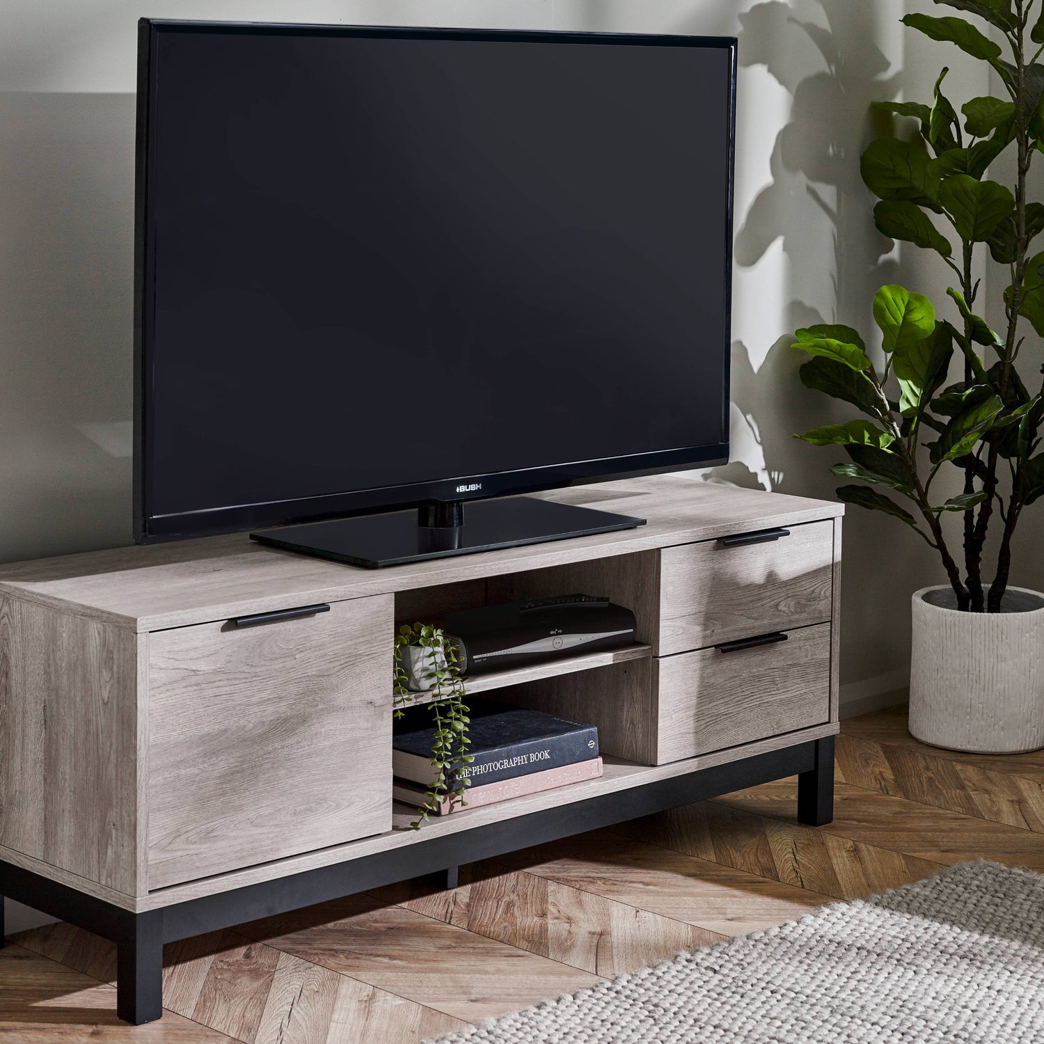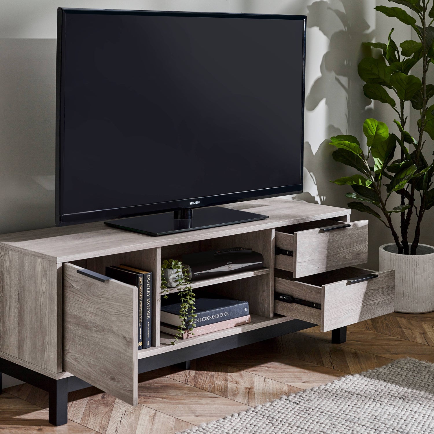 Introduce a touch of classic industrial design to your living space with the Bali TV Unit in Grey Oak. This beautifully crafted unit combines style with simplicity, making it a perfect addition to any modern home.