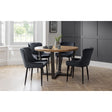 Introducing the Brooklyn Round Dining Table with Luxe Grey Dining Chairs | Rustic Oak and Luxurious Velvet for Modern Elegance