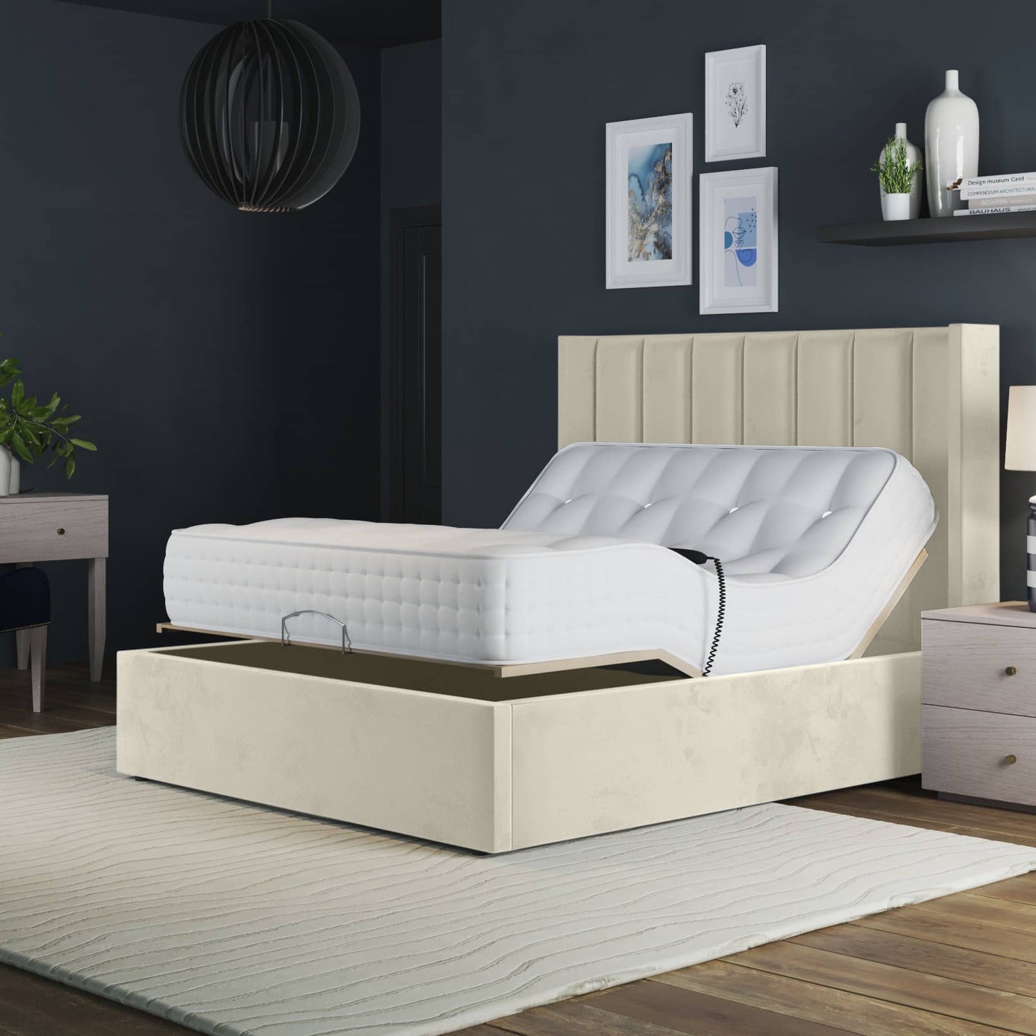 Paris Electric Adjustable Bed Frame with Winged Headboard